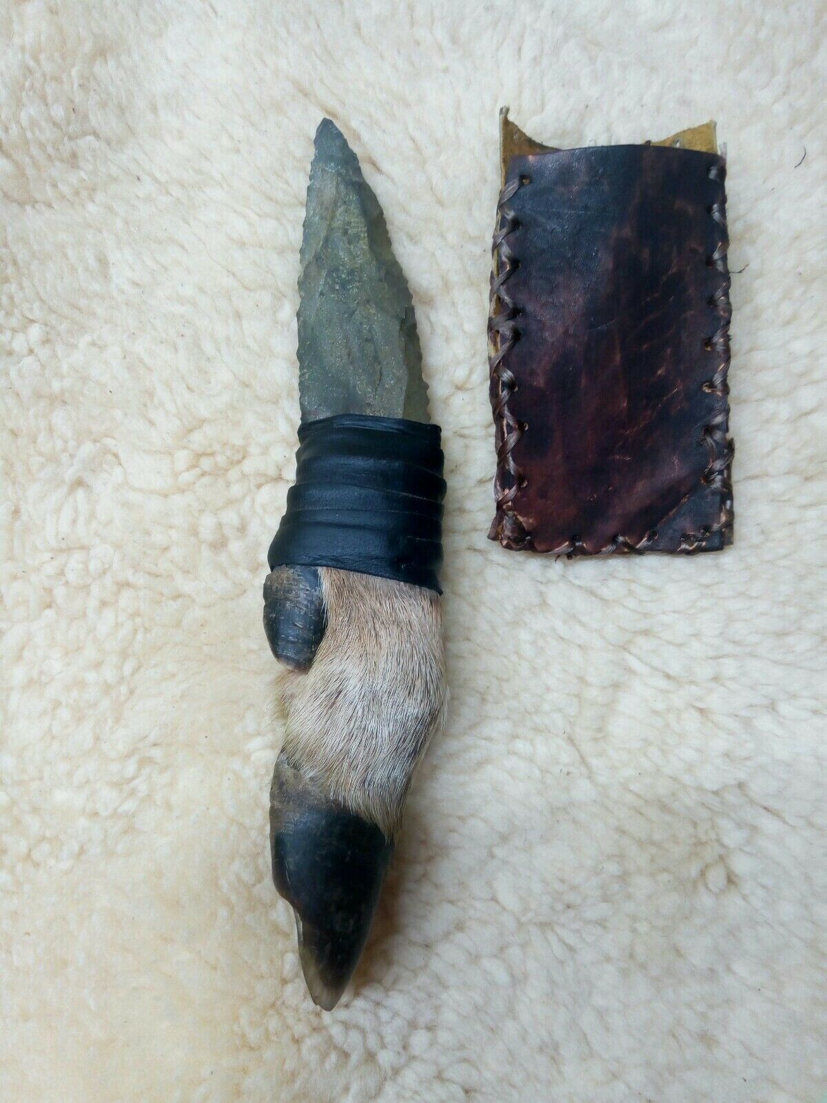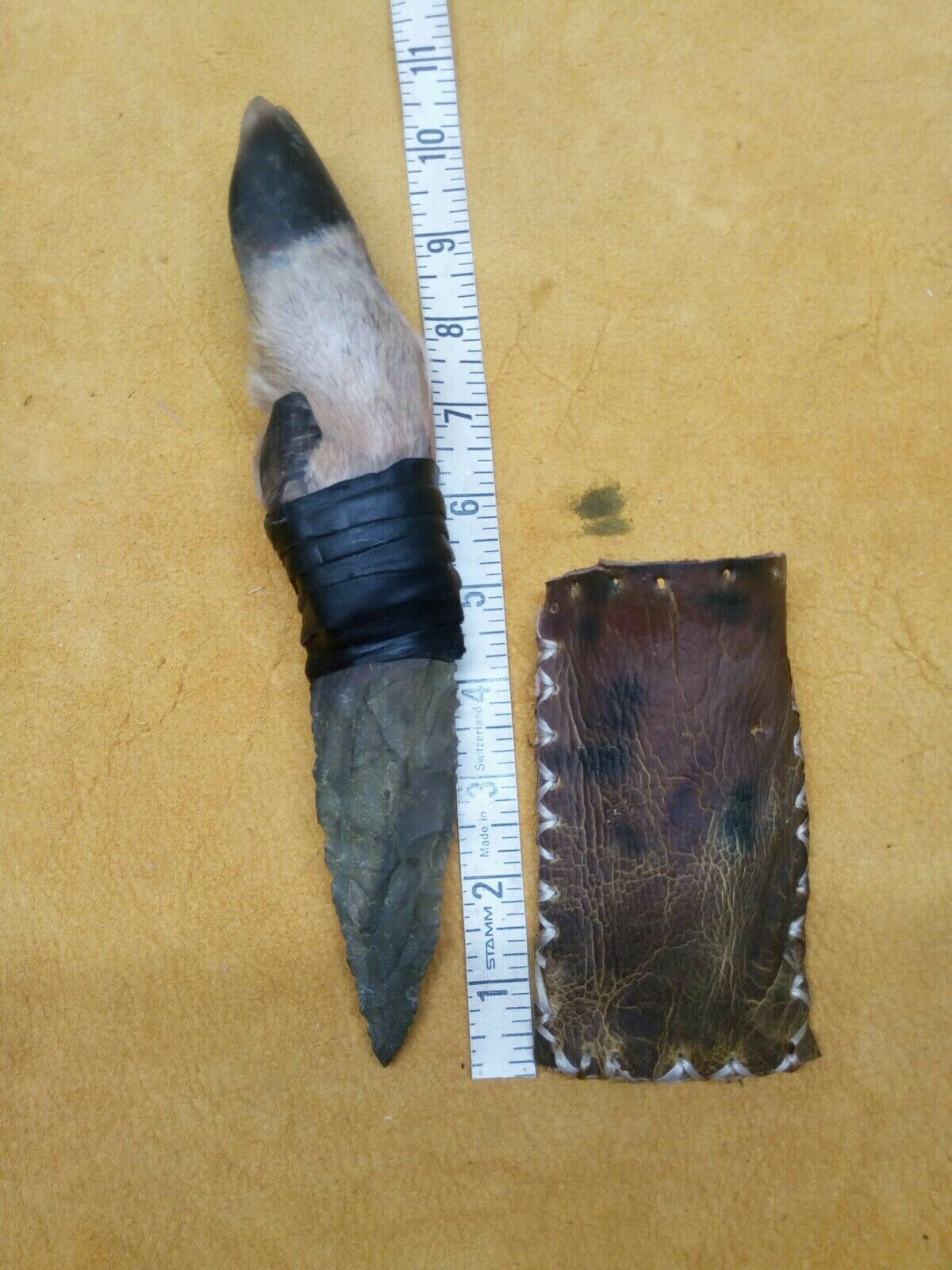agate knife mounted in deer hoof raw hide sheath powwow reenactors