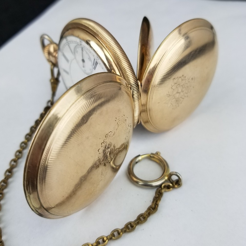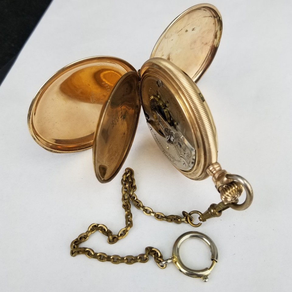 - antique 18s pocket watch American Waltham 15j DOUBLE HUNTER 1883 Gold Filled