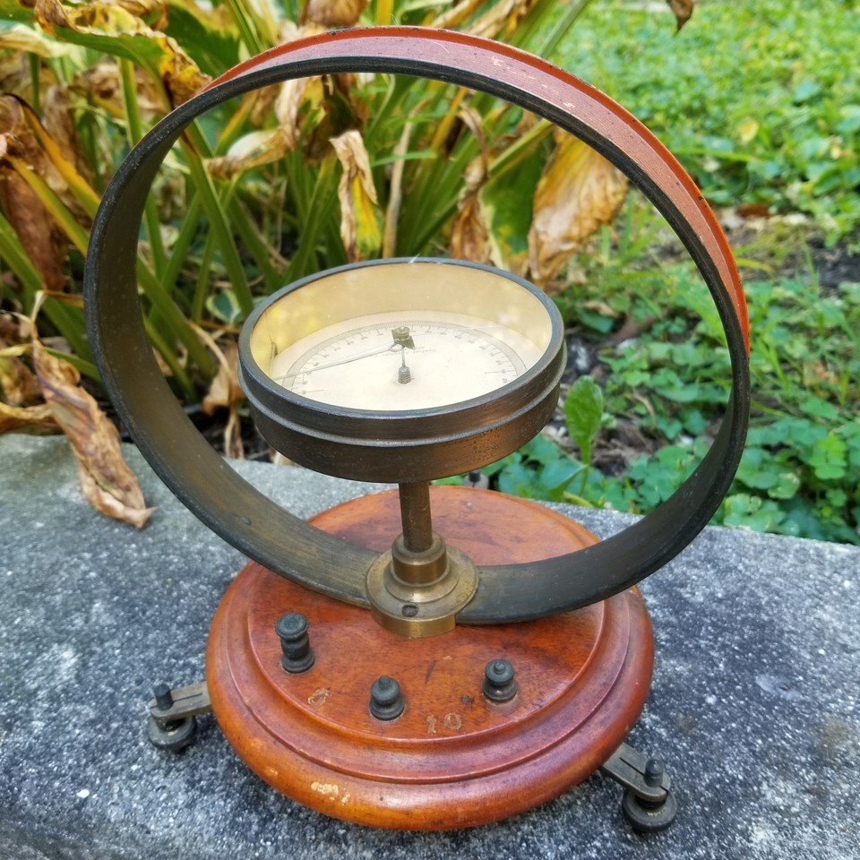 - antique Galvanometer Tangent "Central Scientific" Chicago WOOD & BRASS