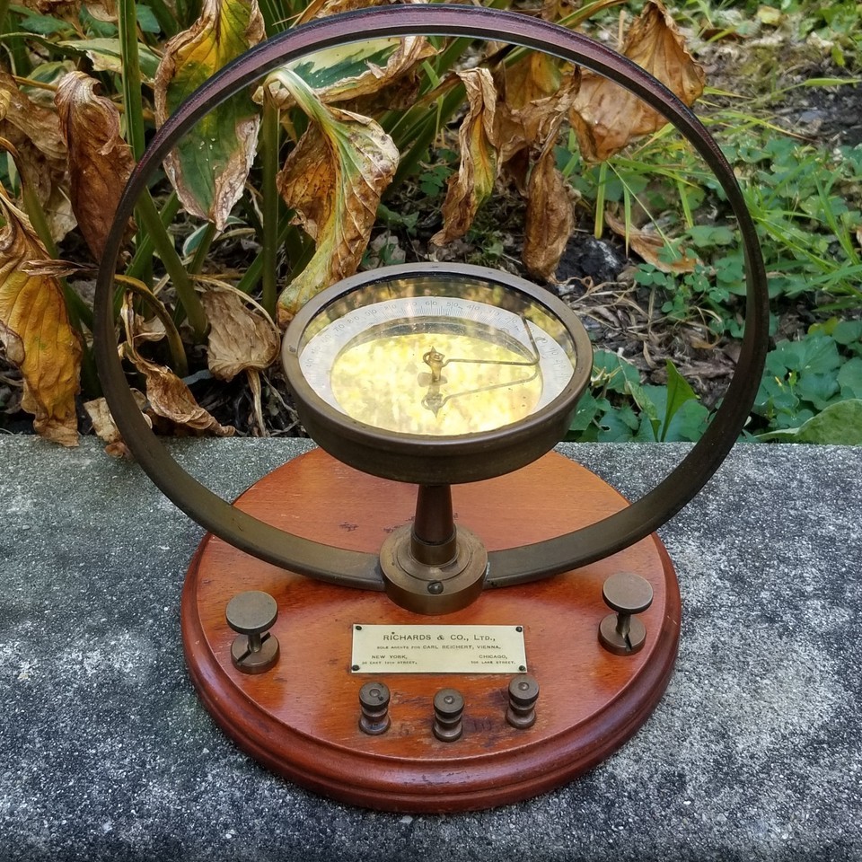 - antique Galvanometer Tangent "Richards & Co." NY Chicago WOOD & BRASS