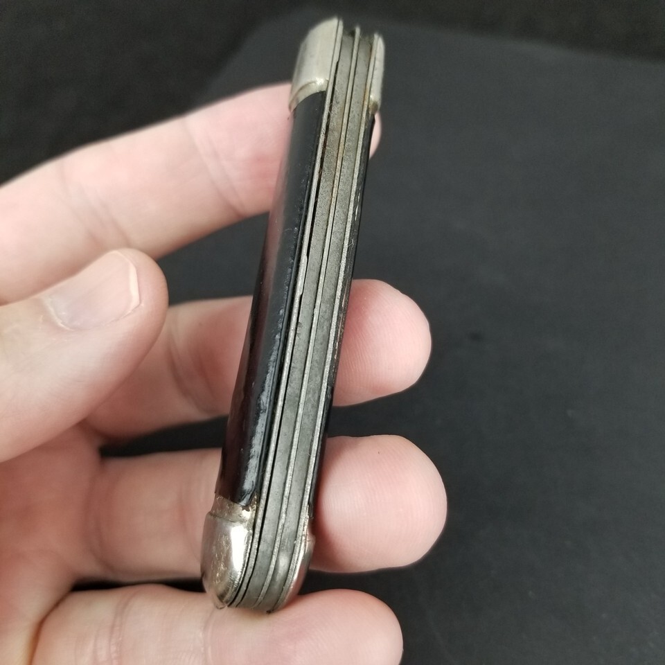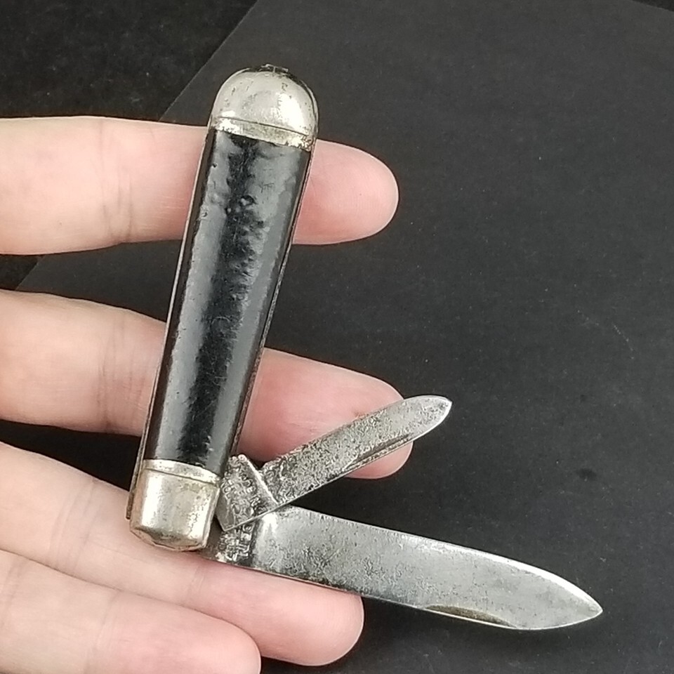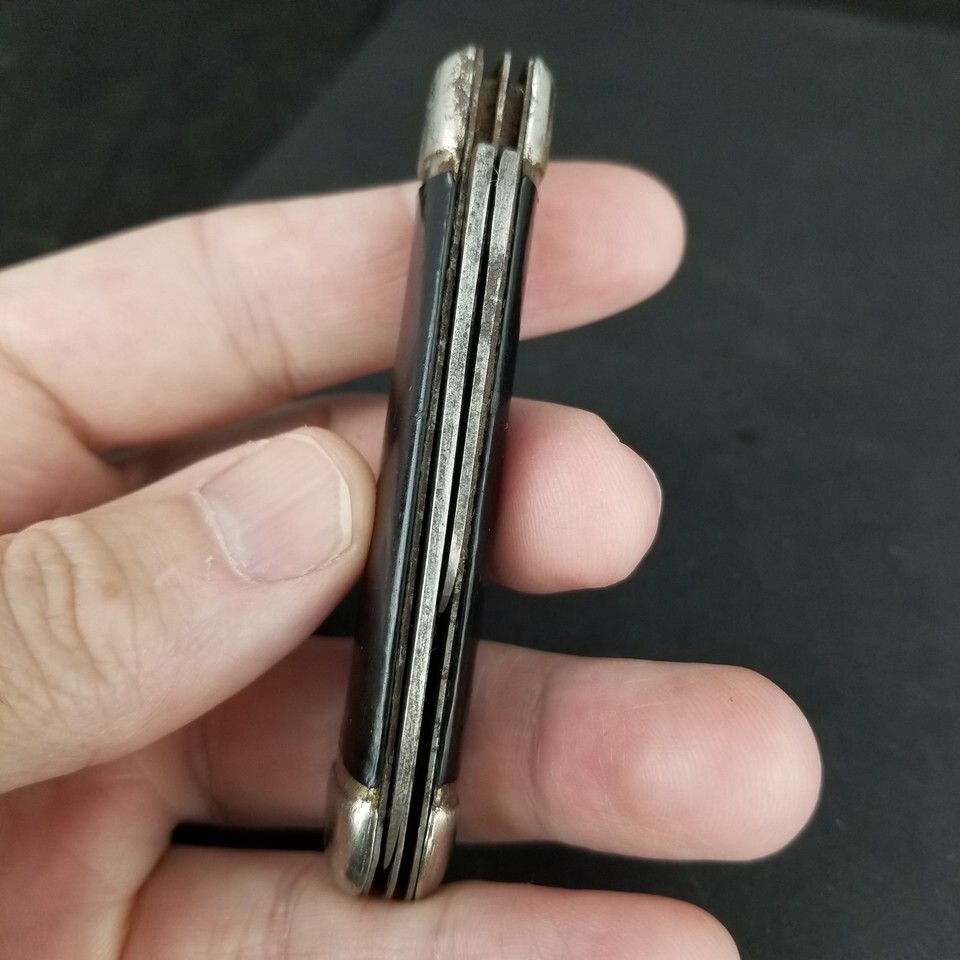 Antique / vintage pocket knife. Black scales double blade with swell end.