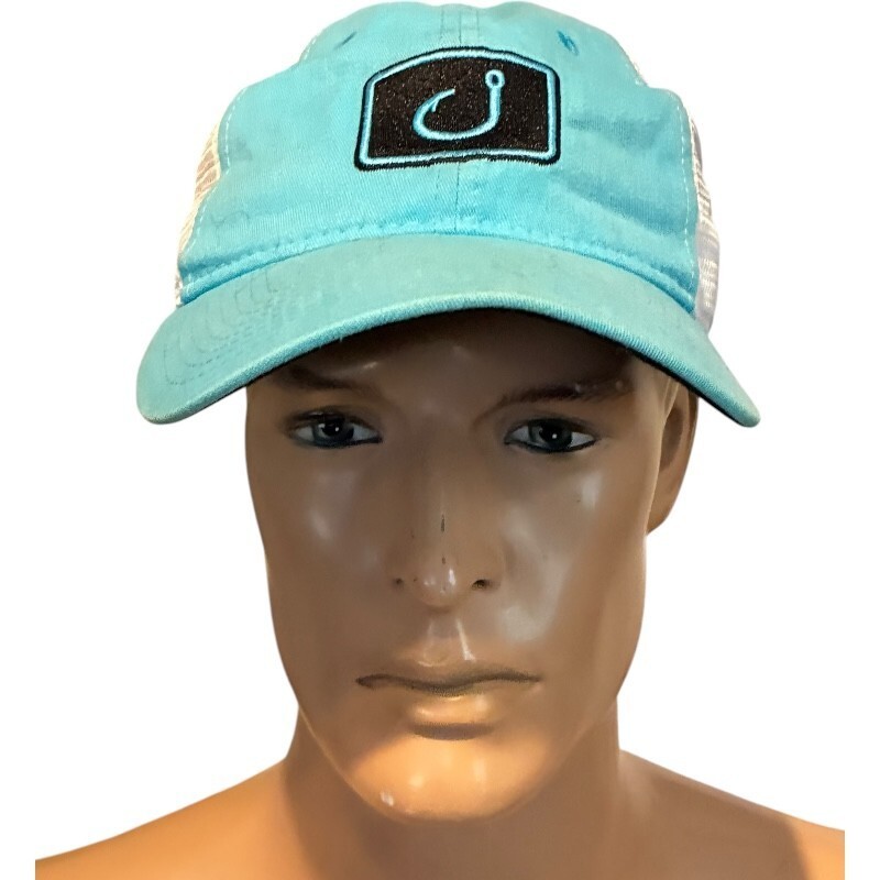 - avid gear hook teal/white mesh hook & loop adjustable trucker hat