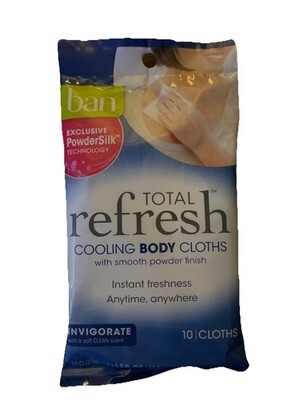 ban Total Refresh Cooling Body Cloths Invigorate 10 Cloths Clean Scent Sealed.