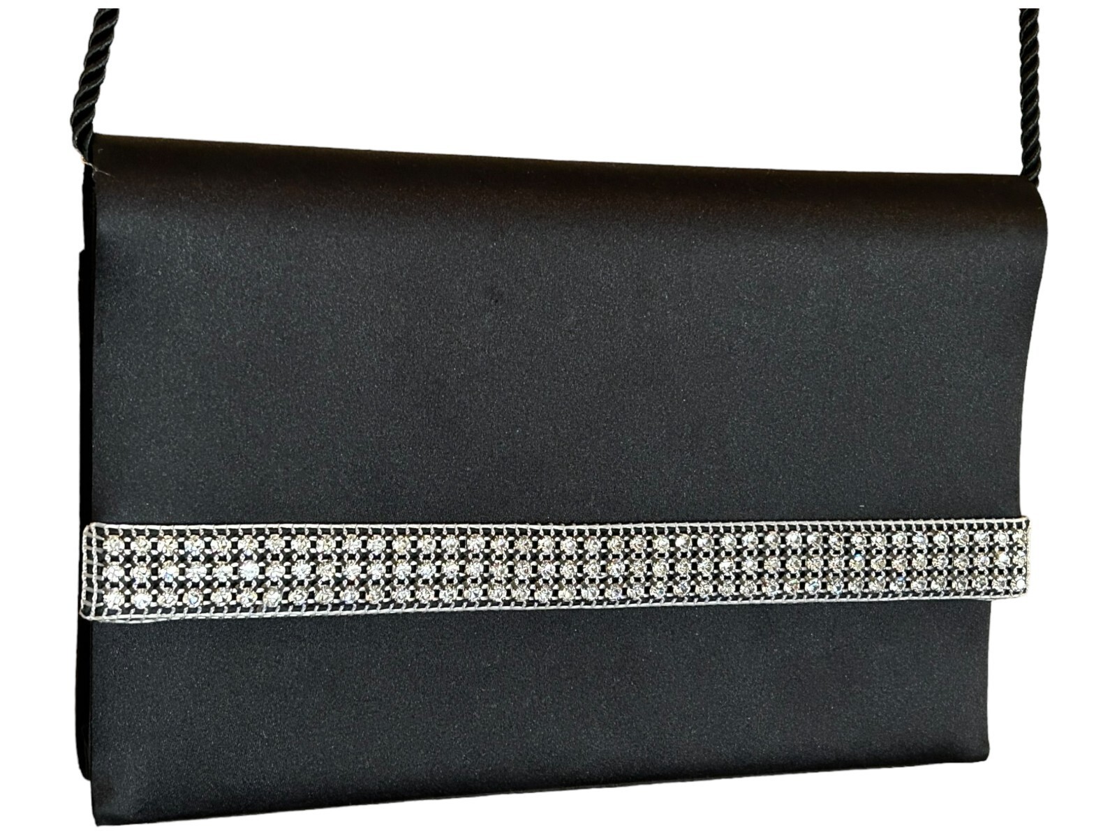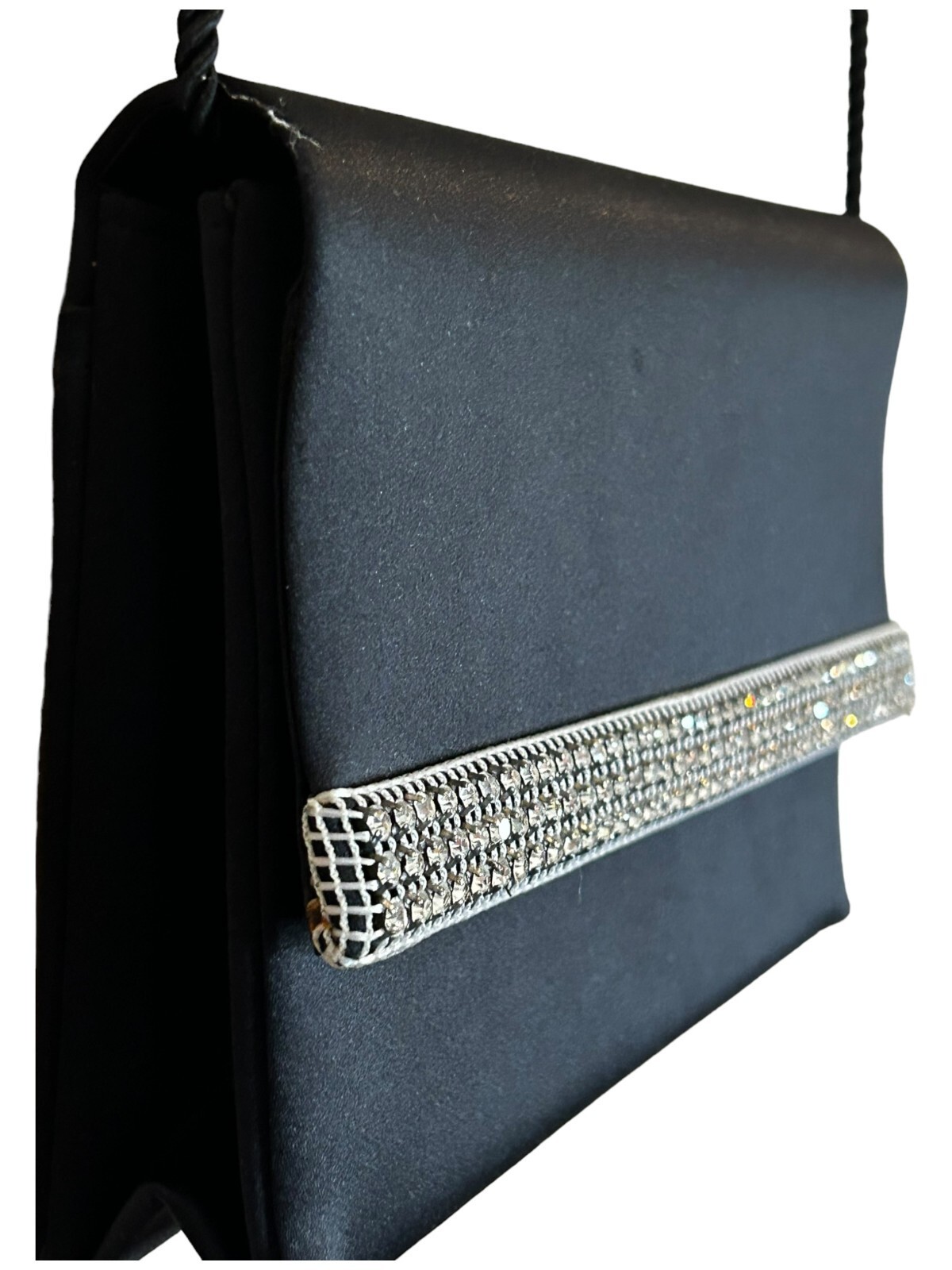 - bechamel crossbody purse black with rhinestones 8.5 x 6 inches