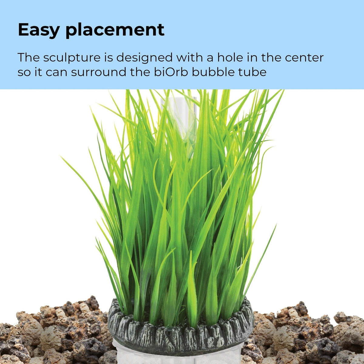 The biOrb Medium Grass Ring is a visually striking aquarium sculpture designed to fit over the biOrb bubble tube, serving as a focal point in your underwater environment. Made from a ceramic resin blend and featuring a plastic plant top, this piece is both fish-safe and easy to maintain, allowing you to create a lush, natural-looking aquascape with minimal effort.