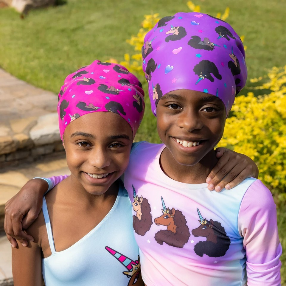 bundle of 2 Swim Cap Set Afro Unicorn perfect solution protect long volum hair