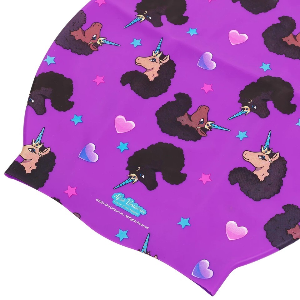 Keep your kid?s hair dry, even during an action-packed pool playtime, with Afro Unicorn Swim Caps. In this 2-pack, you?ll find a different swim cap to fit every hair type. Designed to be watertight and comfortable, they?ll keep hair dry without ruining the good times. These swimmer?s caps feature a shiny gold finish and an ultra-cute Afro Unicorn print. Help kids feel confident in the water with these high-quality swim caps. Drying off after an afternoon in the backyard pool will be much easier with these smartly designed swim caps.