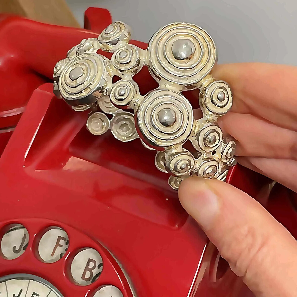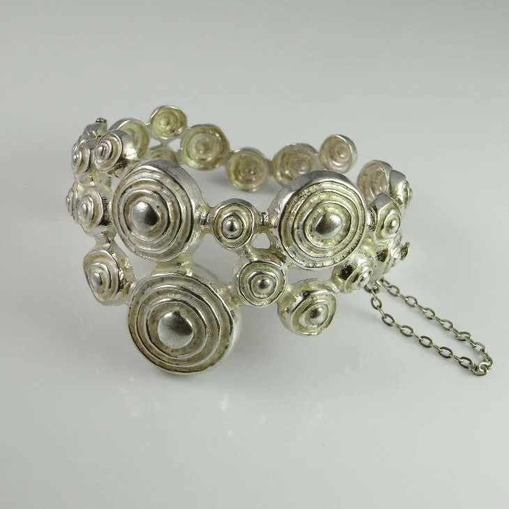 An astonishing mid century modernist hand made solid sterling silver bangle.