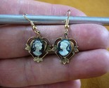 cme71-3 CLASSIC WOMAN HAIR black + off white CAMEO brass heart earrings Jewelry