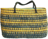 - cotton lined straw tote bag beige & blue 17 x 10 x 4 inches