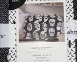 cupcakes & cashmere Black/White Skull Pattern Chenille Knit Blanket King Size