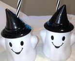 Halloween Ghost Goblins Plastic cups With Straws Set Of 2 black and white