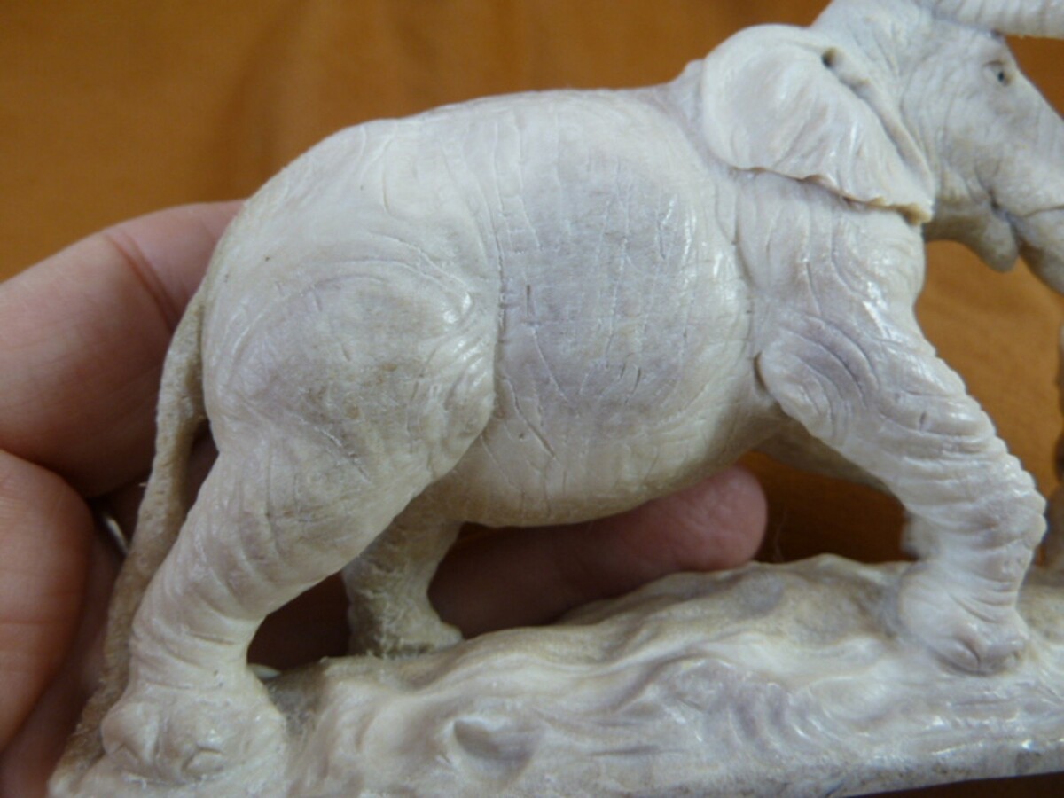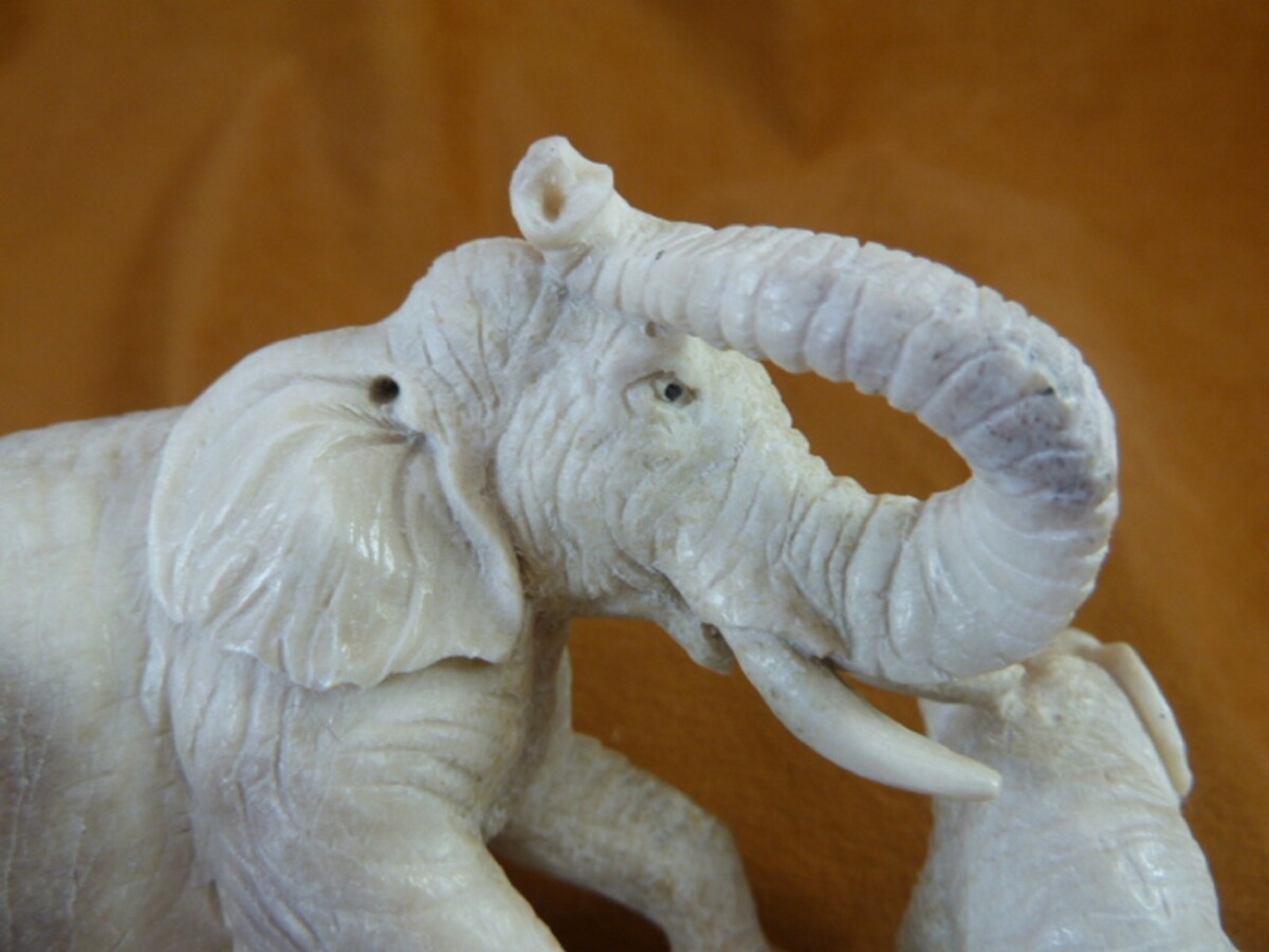 (#ELE-w53) Beautifully hand crafted, OUTSTANDING, exquisite figurine of a detailed mother and baby elephant, shed moose antler, fully crafted, 5-3/8" long x 3" tall x 1-1/2" wide.
