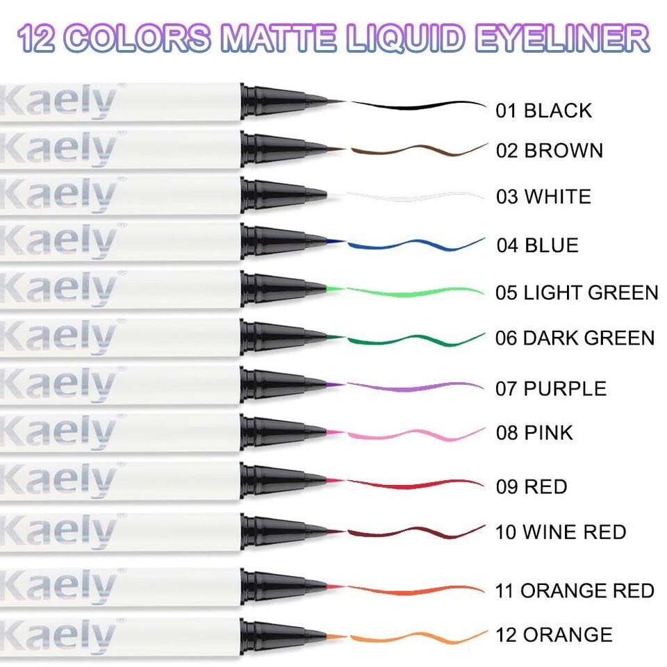 Ultra-fine Speed Dry Liquid Eyeliner PensThe liquid eyeliner pen tip has smooth lines, Ultra-fine, Speed Dry, provides 12 kinds of bright colors. It can provide long-lasting, dazzling matte colors to help you easily create fashionable makeup and show the most charming charm of women.