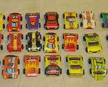 20 numbered folded cardboard race cars - All have plastic wheels that roll, but due to cardboard dragging these won't roll freely by themselves. Each car is numbered
