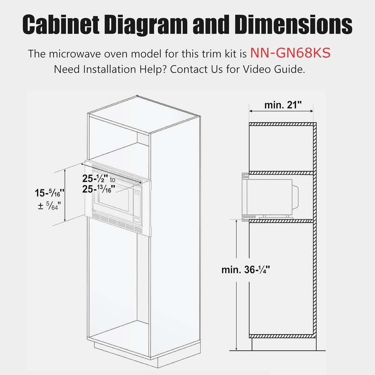 ?Model Compatibility?This 27-inch microwave trim kit is designed to fit microwaves measuring 20.7" x 12.2" x 15.8" and is compatible with panasonic models NN-GN68KS, NN-SN67KS, NN-SN686S, NN-SN686SR, and NN-SN67HST. Always measure your microwave and cabinet opening (see diagram) before purchasing to ensure a proper fit.