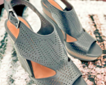 - gianni bini laser cut black italian leather ankle strap wedge sandals womens 7.5