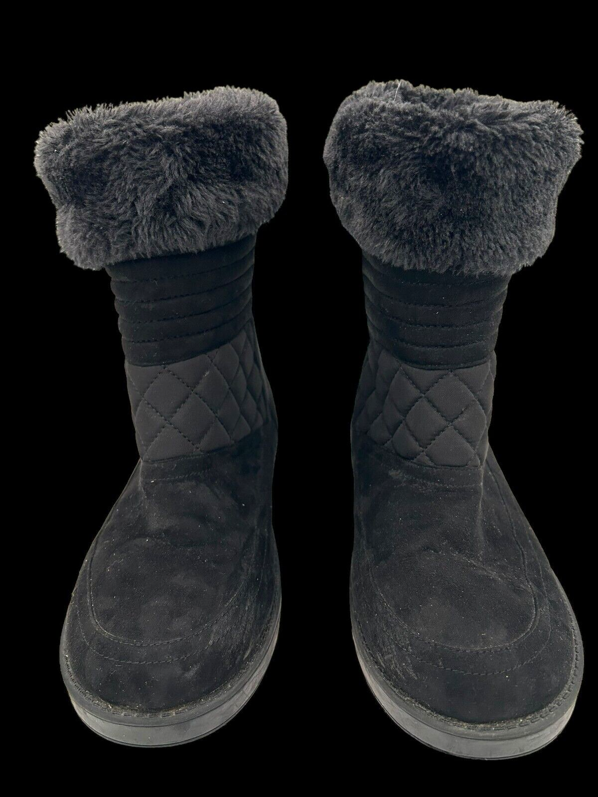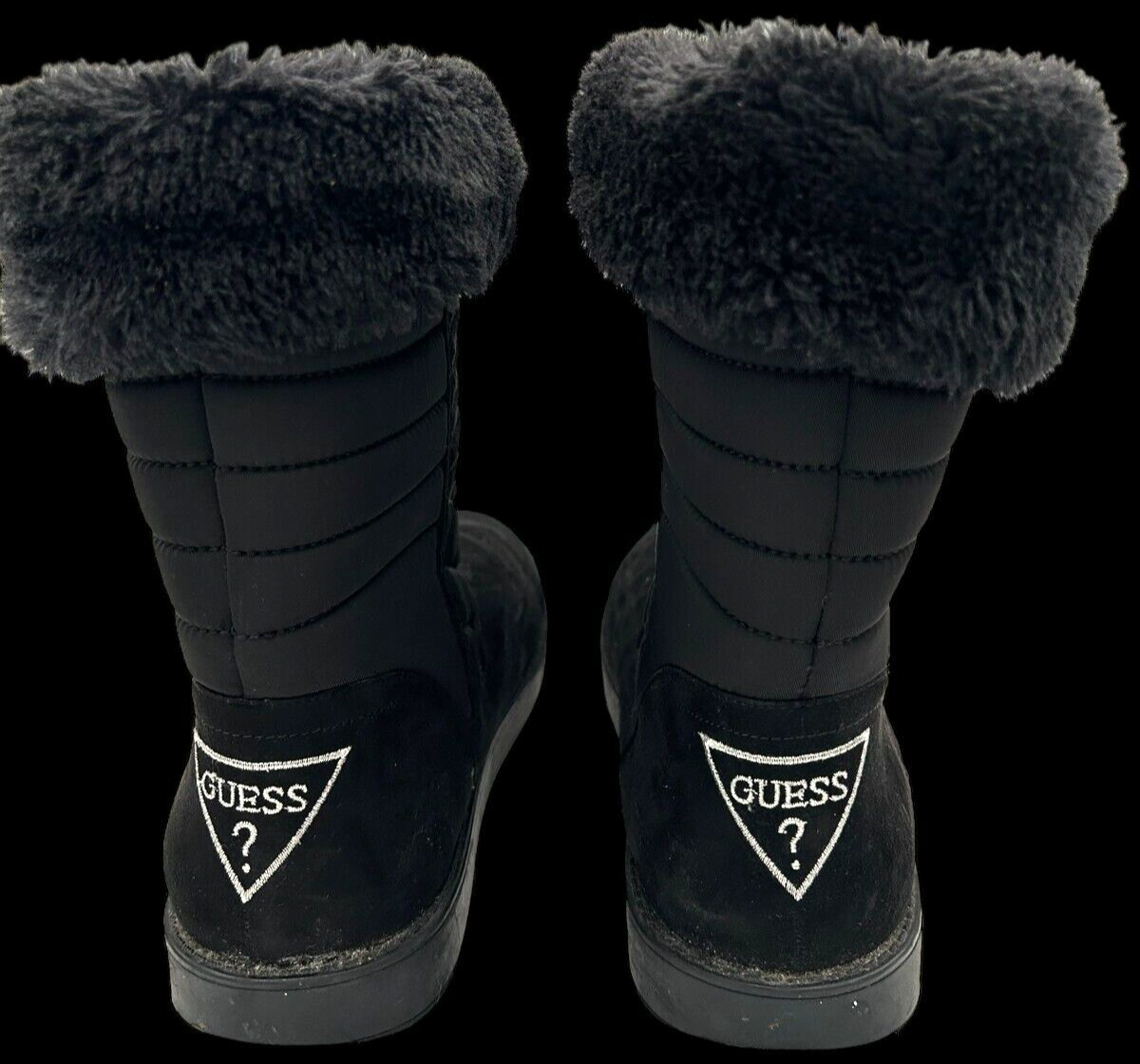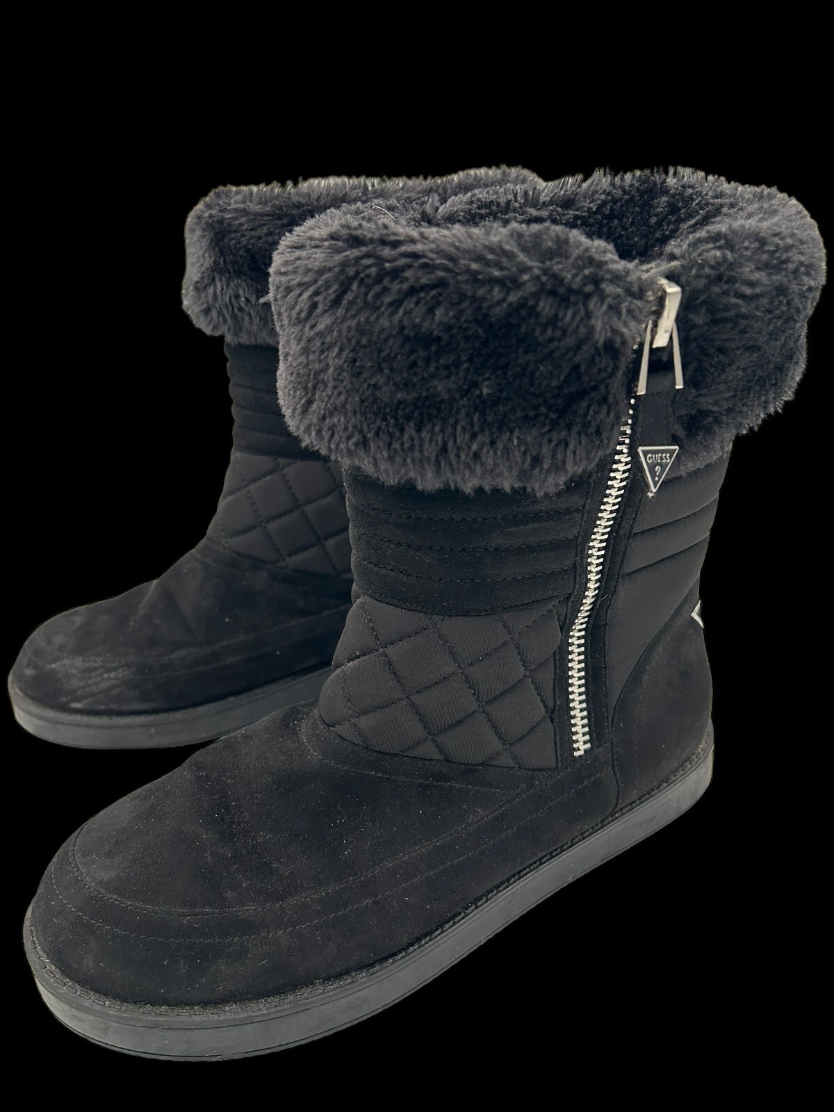 - guess alona black quilted faux suede fur pull on boots women s 8M zipper accent