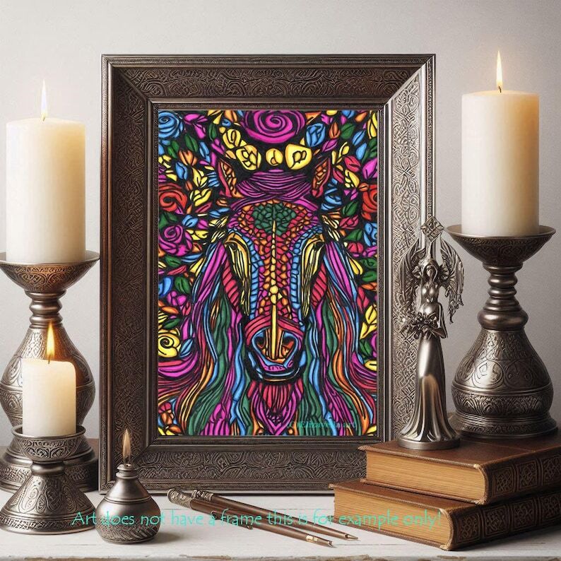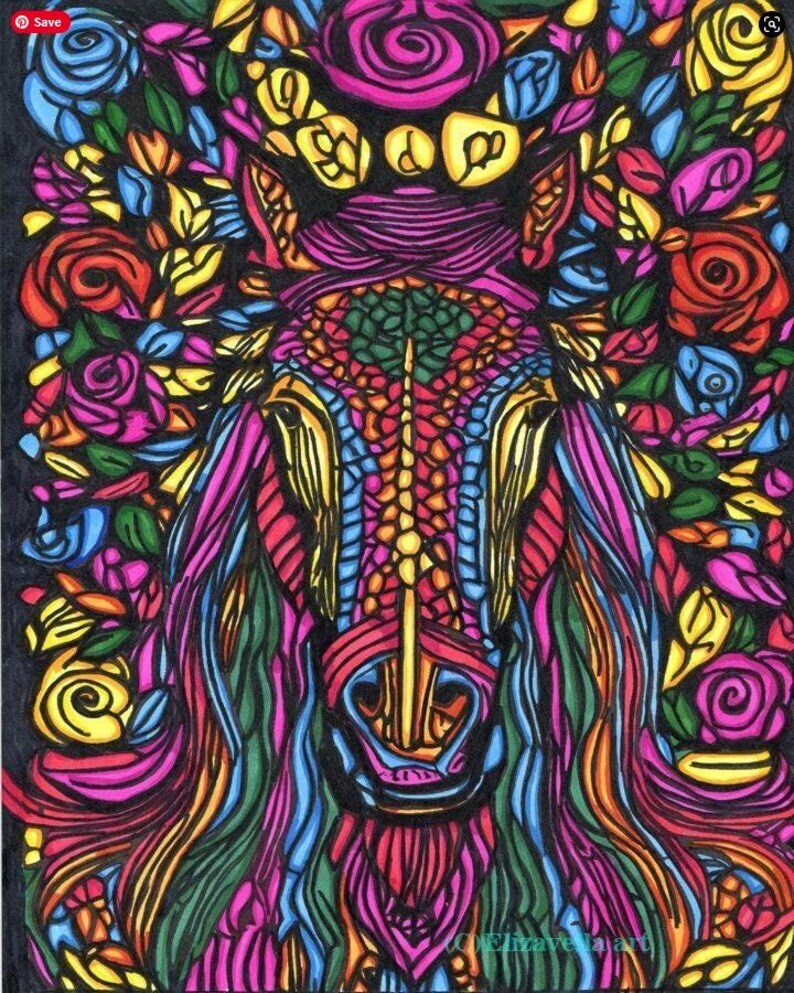 horse head markers original drawing, abstract animal art, stained glass style ar