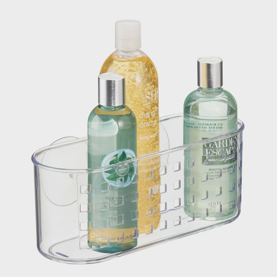 - iDesign Plastic Suction Bathroom Shower Caddy Basket for Shampoo, Conditioner,