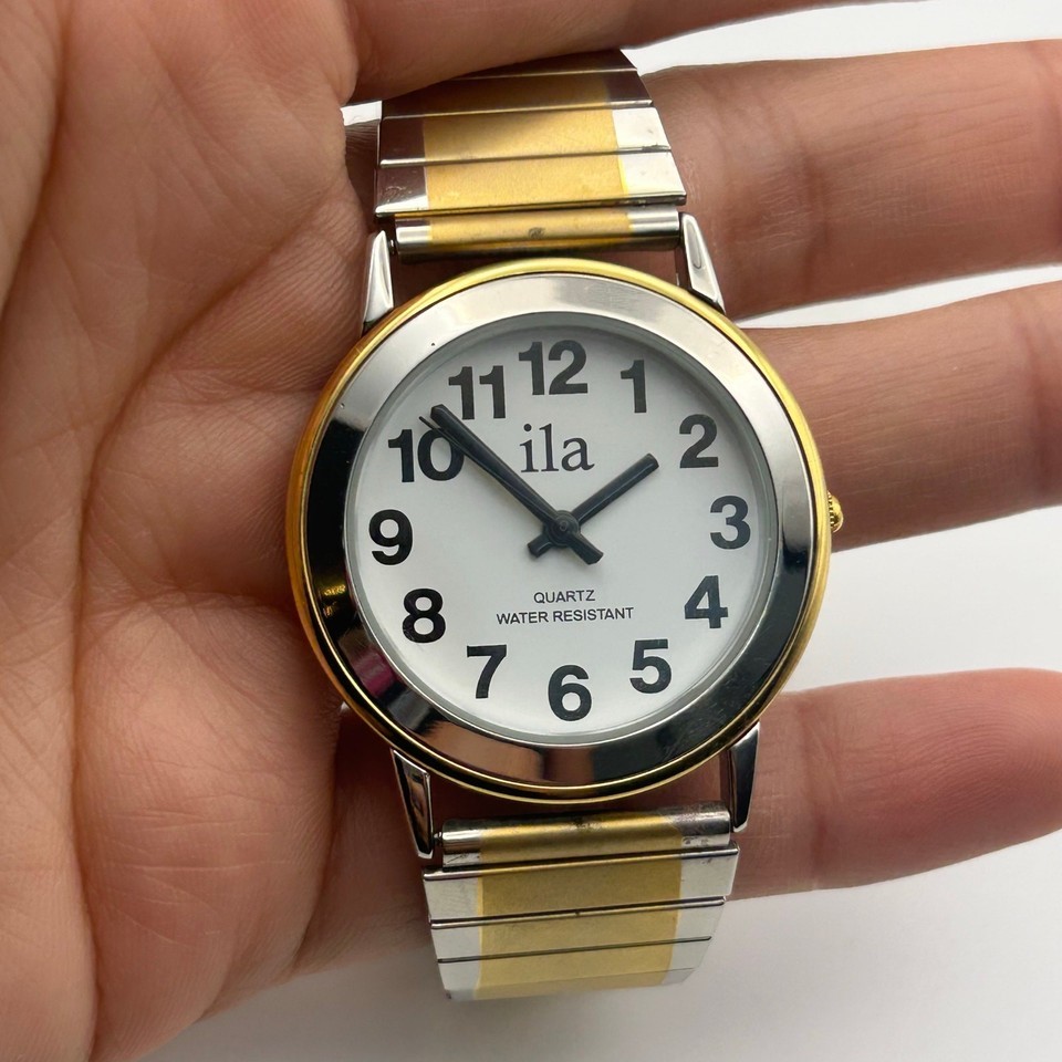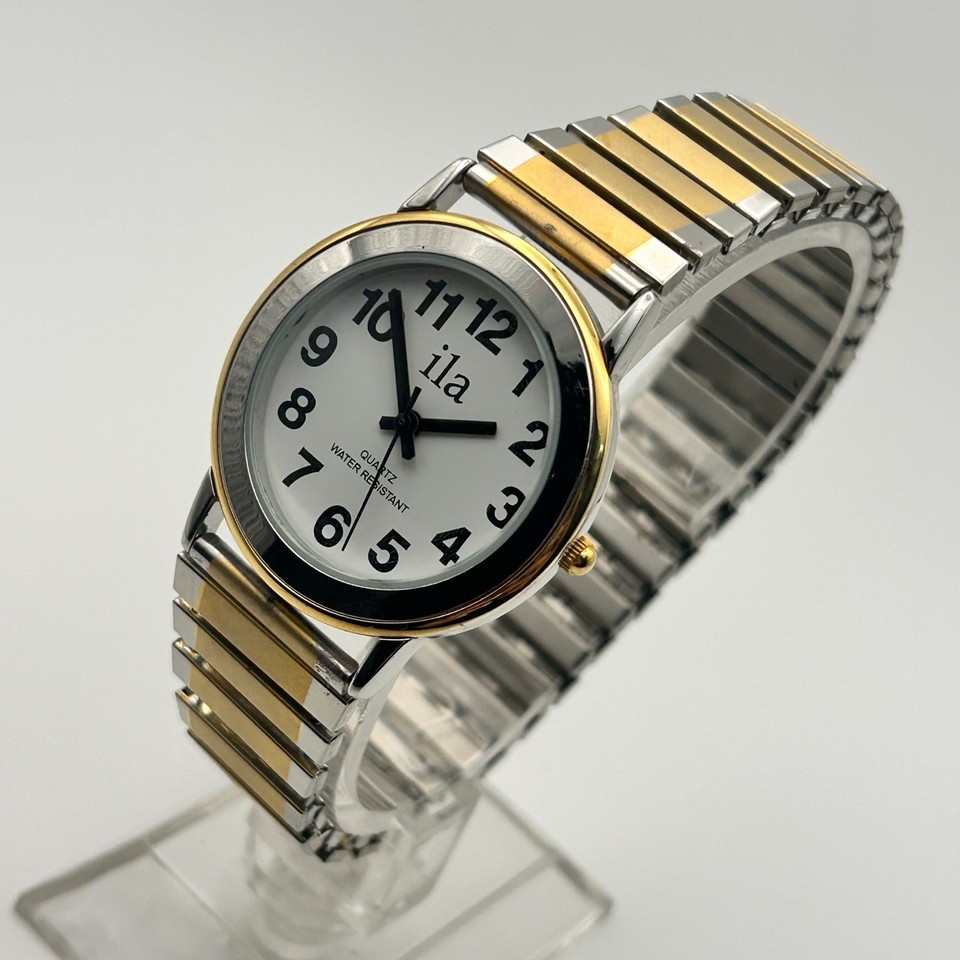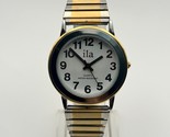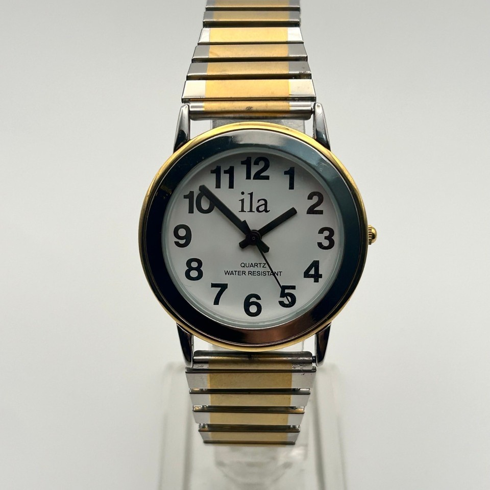 This Ila women's watch is a timeless piece that combines elegance and functionality. Featuring a sleek gold and silver stainless steel design, this 33mm quartz watch is perfect for everyday wear or special occasions. It is in working condition.