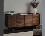 Transform your living space with this sophisticated solid wood sideboard cabinet that seamlessly merges vintage charm with modern functionality. Thoughtfully proportioned at 63 inches in length, this statement piece provides generous storage behind its four doors while maintaining an elegant profile at 27.6 inches high and 15.7 inches deep. The rich retro brown finish highlights the natural wood grain, creating a warm, inviting presence whether placed in your entryway, dining room, or living area. The cabinet's mid-century modern design elements shine through its clean lines, rounded edges, and sturdy block feet, while the spacious interior shelving adapts perfectly to store shoes, tableware, books, or media components. Crafted from solid wood with meticulous attention to detail, this versatile buffet cabinet delivers both enduring style and practical storage solutions for the contemporary home.