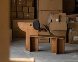 Product description: Transform your living space with this whimsical dog-shaped wooden bench that perfectly blends playful design with mid-century modern aesthetics. Crafted from solid wood with a warm honey finish, this unique piece features a charming canine silhouette complete with circular ear accents and smooth, rounded edges. The thoughtfully designed profile creates an artistic statement while providing functional seating for your entryway, bedroom, or creative studio. Its versatile nature allows it to serve as a shoe bench, footstool, or distinctive accent furniture that sparks conversation. The clean geometric lines and minimalist proportions reflect vintage sensibilities while maintaining contemporary appeal. The wide, stable base ensures secure seating, while the natural wood grain patterns add warmth and character to any room. This Interoknack creation demonstrates exceptional woodworking artistry, transforming ordinary seating into a delightful furniture sculpture that brings joy to everyday spaces.