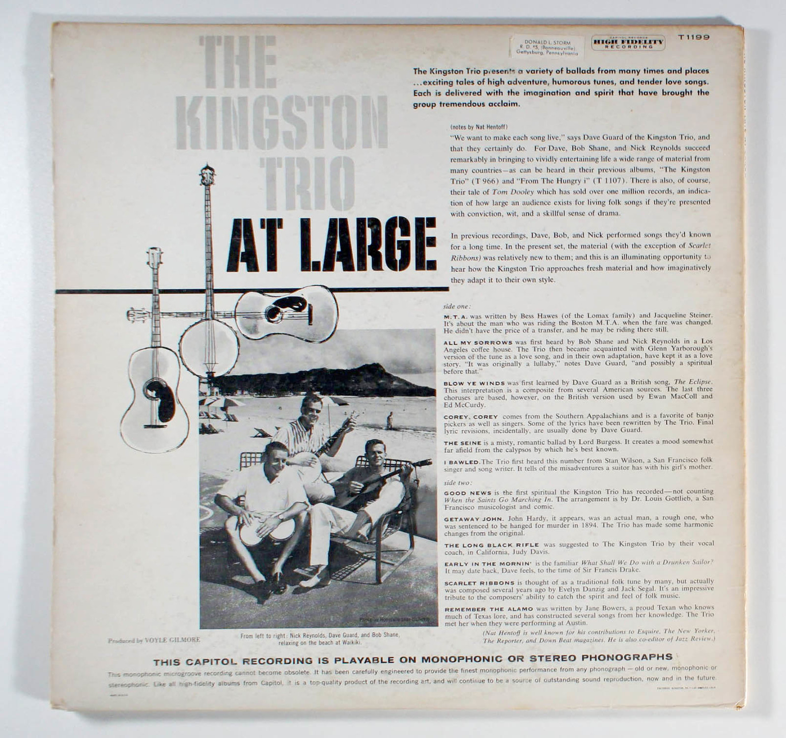 - Kingston Trio - At Large (1959) Vinyl LP • MTA, All My Sorrows
