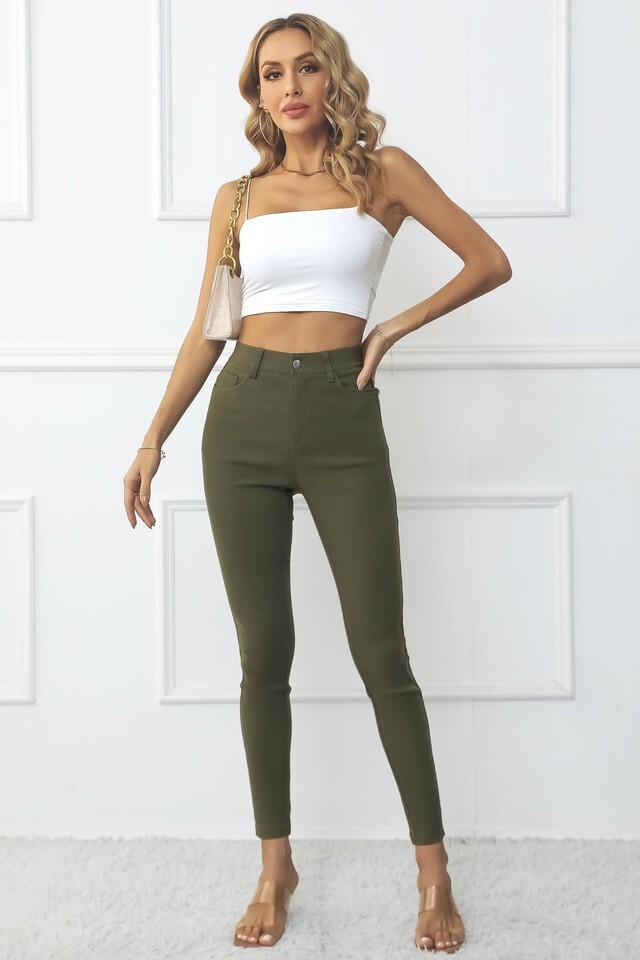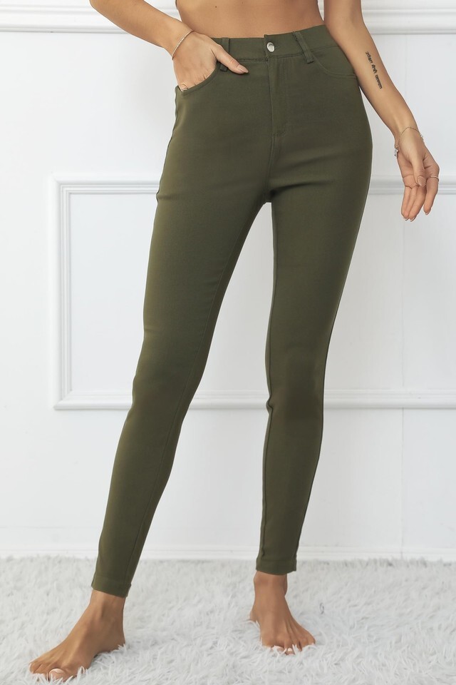 - levaca Womens High Waisted Skinny Jeggings Pants with Pockets Army Green Size S