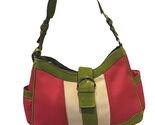 Primary image for liz claiborne vintage Leather& Polyester Striped Purse Pink Green Beige