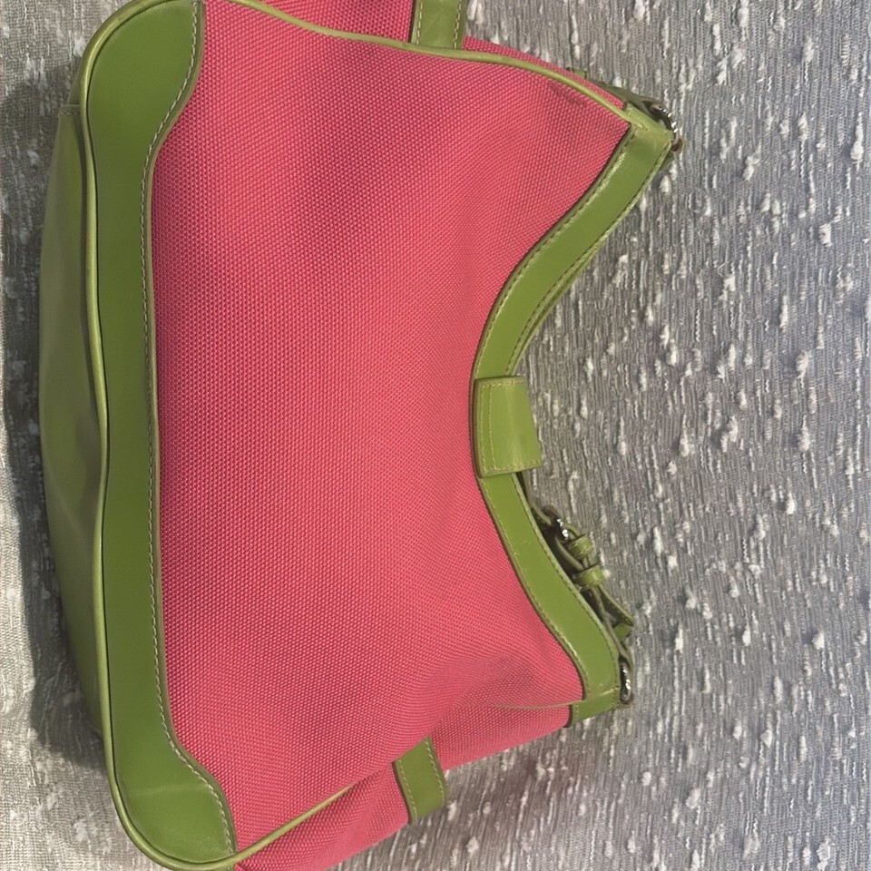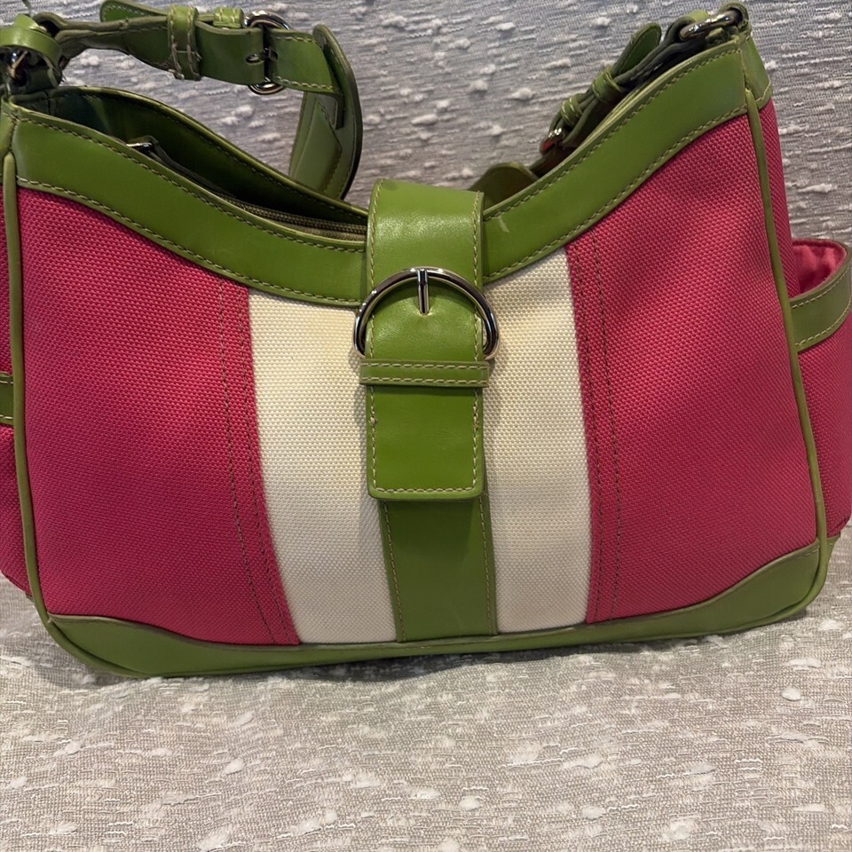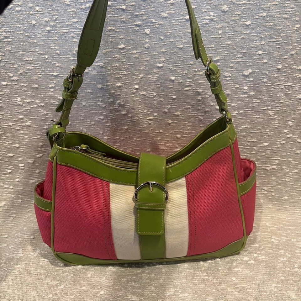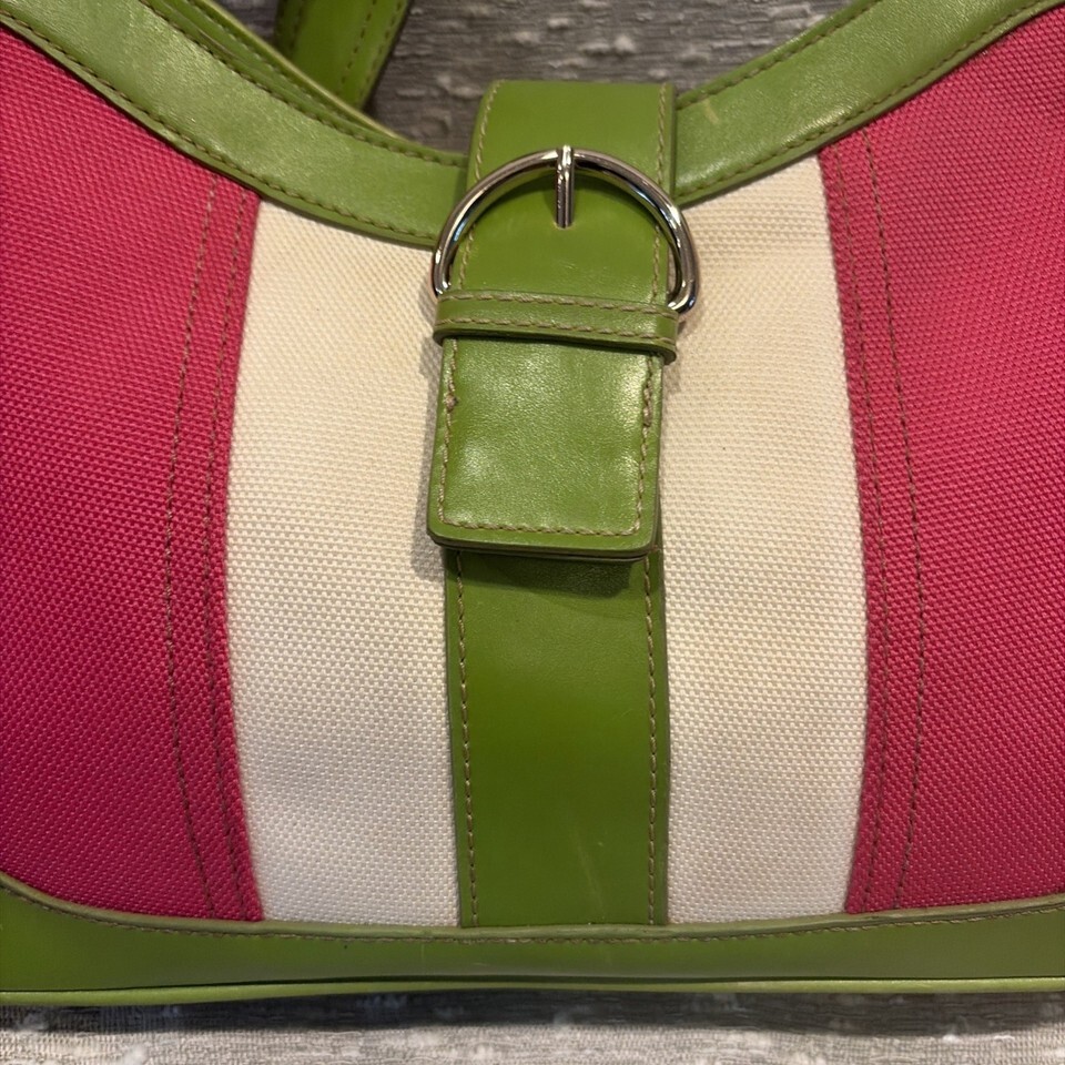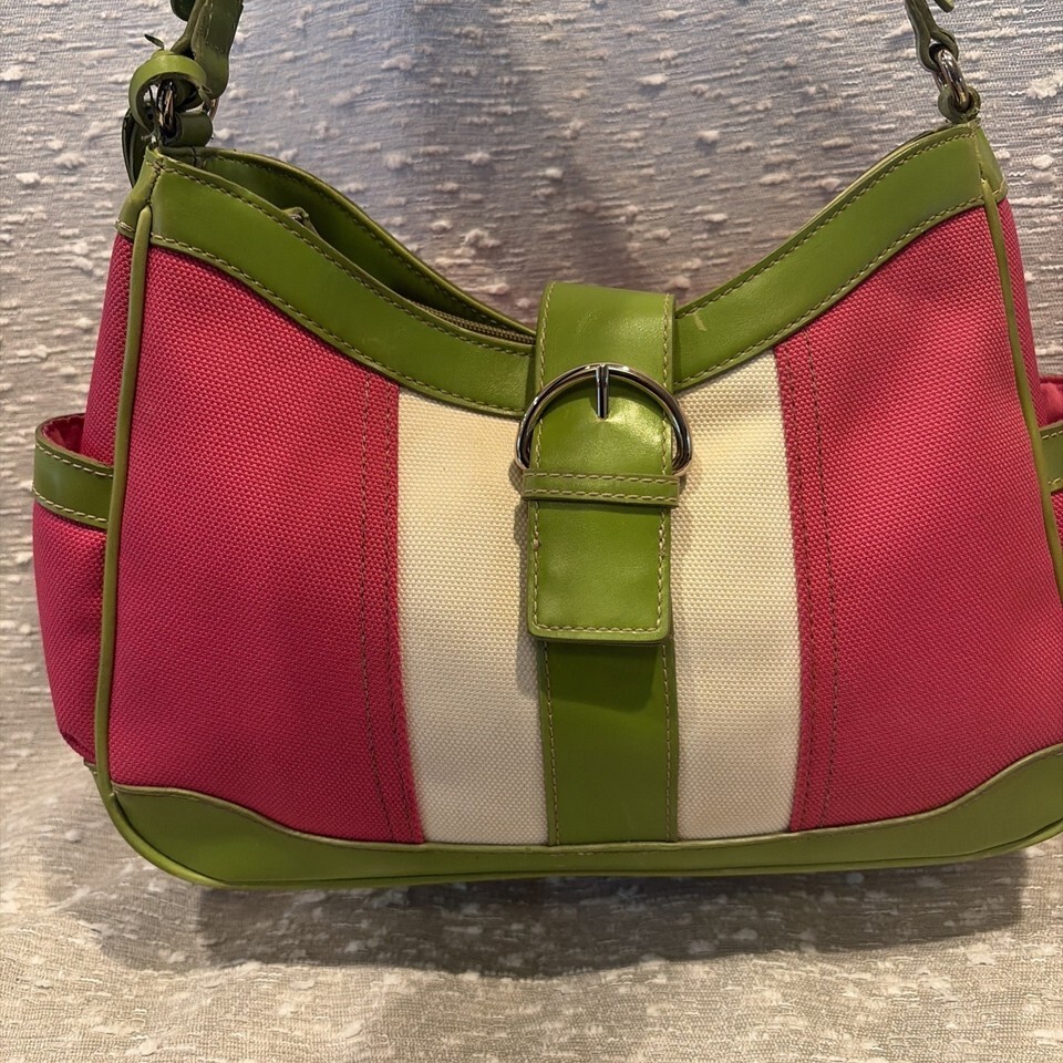 liz claiborne vintage Leather& Polyester Striped Purse Pink Green Beige