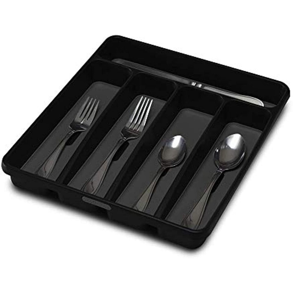 The madesmart Classic Small Silverware Tray in carbon helps you organize silverware in this five-compartment tray designed to fit small drawers. Features rounded corners for easy cleaning, soft-grip lining and non-slip rubber feet to keep things in place. Made from high-quality, BPA-free plastic.