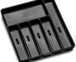 - madesmart Silverware Tray-CARBON COLLECTION 6 Compartments, Soft-Grip Lining &