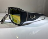 men's hexagonal shaped sunglasses with black frame and yellow reflective lenses. Great style at great price.