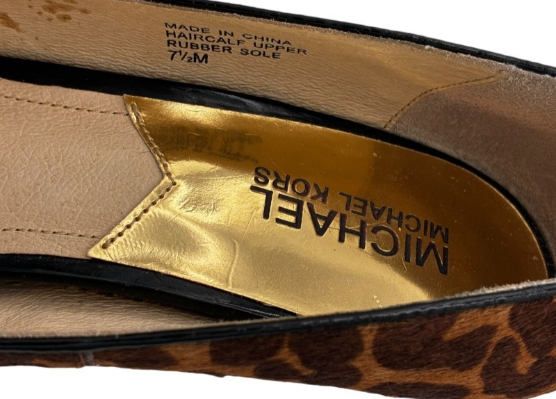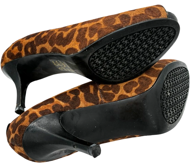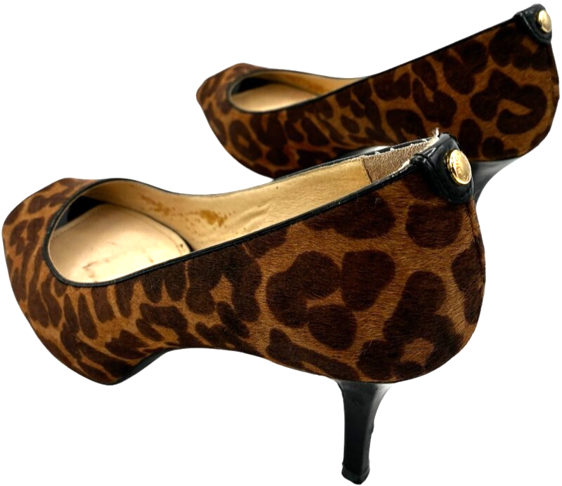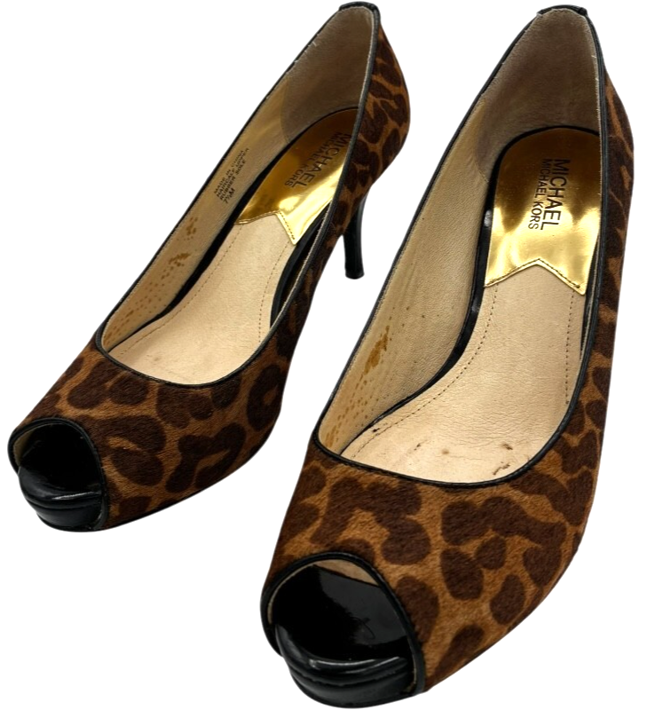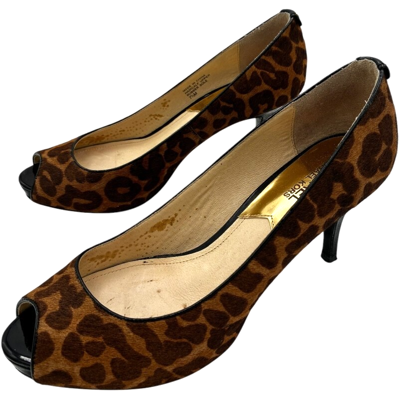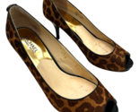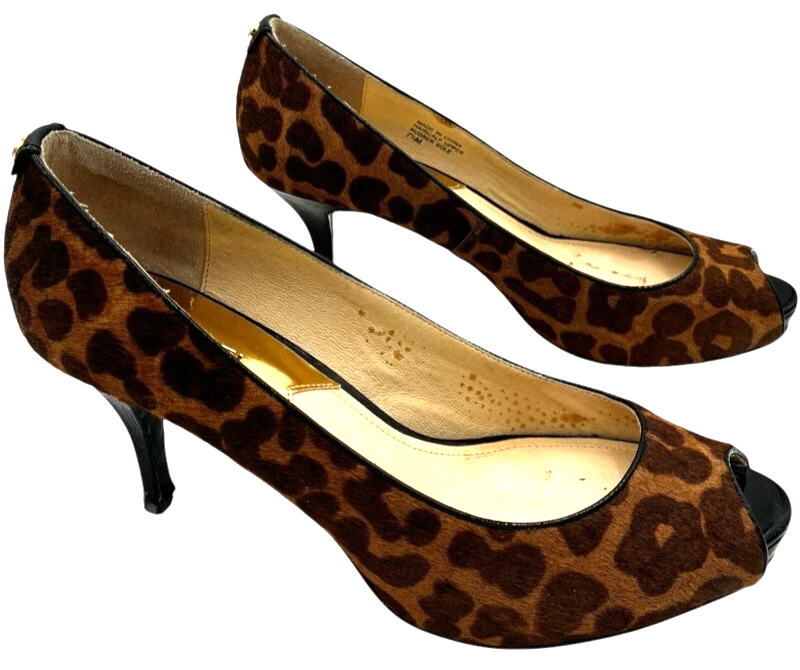 michael kors york womens cheetah print calf-hair peep toe 3" heel pumps size 7.5 M