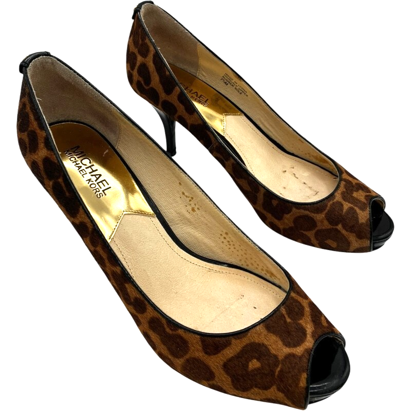 - michael kors york womens cheetah print calf-hair peep toe 3 in. pumps size 7.5 M