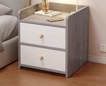 Transform your bedroom with this modern Interoknack bedside table, perfectly sized for small spaces at just 12.7 inches wide by 10.2 inches deep and 15.7 inches high. The stylish ash grey and white color scheme complements virtually any decor, from minimalist to transitional interiors. Featuring two spacious drawers with smooth-gliding action and attractive round wooden knobs, this nightstand provides ample storage for your bedside essentials. The thoughtfully designed top surface includes raised edges to prevent items from sliding off, keeping your lamp, books, or devices secure. Despite its compact footprint, this versatile piece delivers both functionality and contemporary style, making it equally suitable beside your bed or as an accent table in living rooms and offices. Durably constructed with quality wood materials, this nightstand combines practicality with understated elegance for any compact living space.