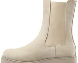 mysoft women's Chelsea Combat Boots Mid Calf Platform Chunky Heel Beige size 9.5