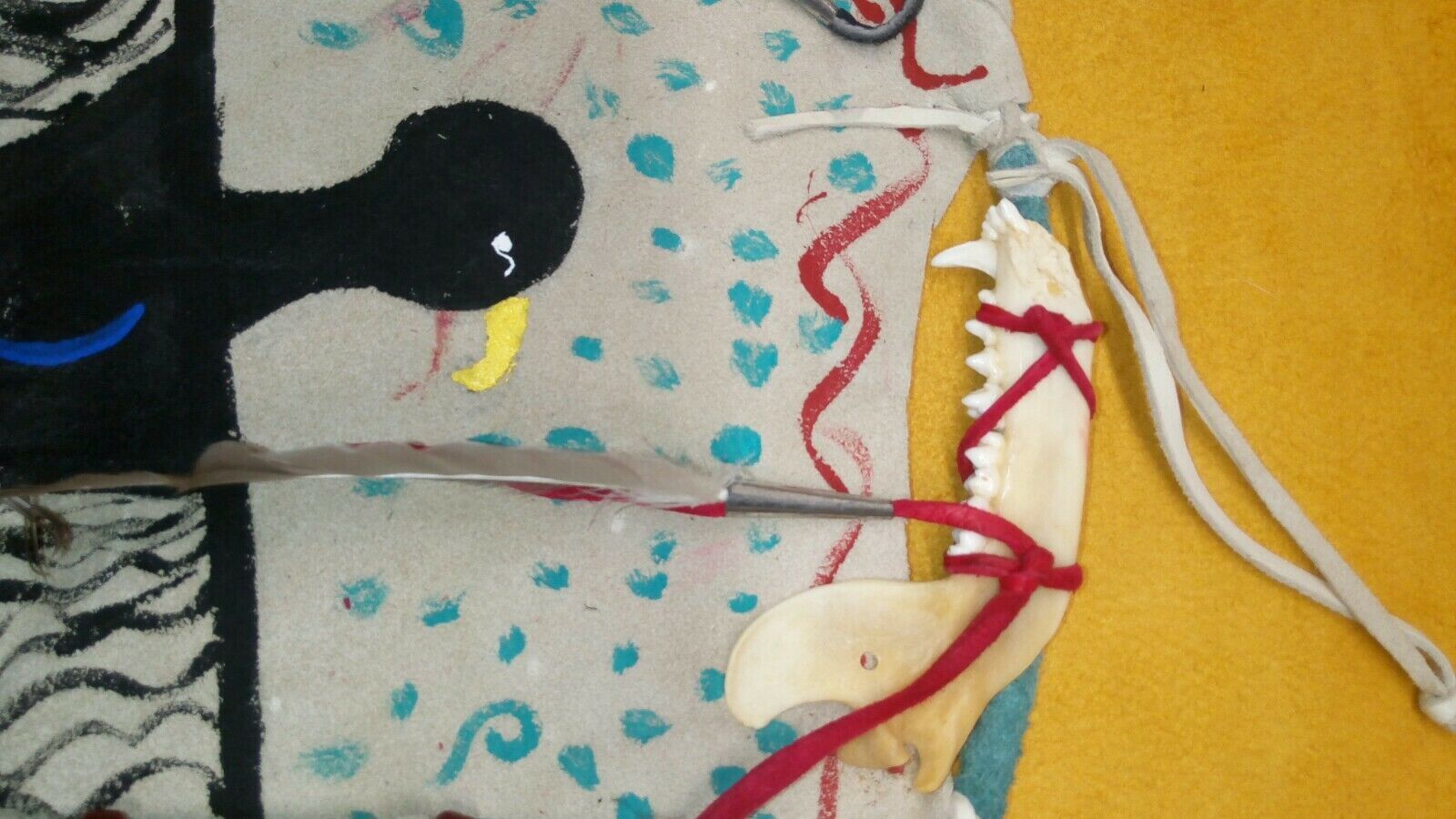 raccoon jaw, turkey feathers.duck feathers |