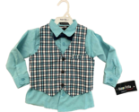 - new HAPPY FELLA sz 4T Blue Button Up Shirt With Plaid Vest and Bowtie 3 pc. Set
