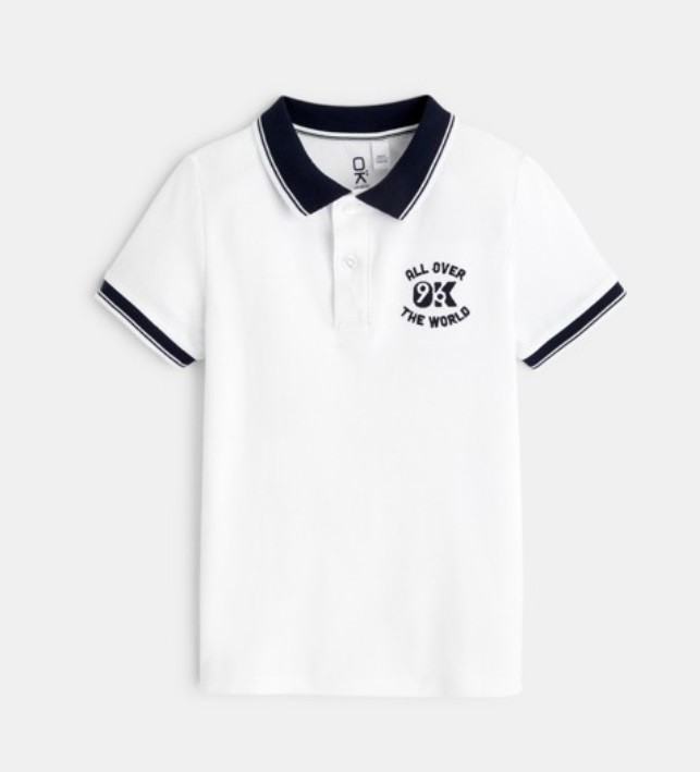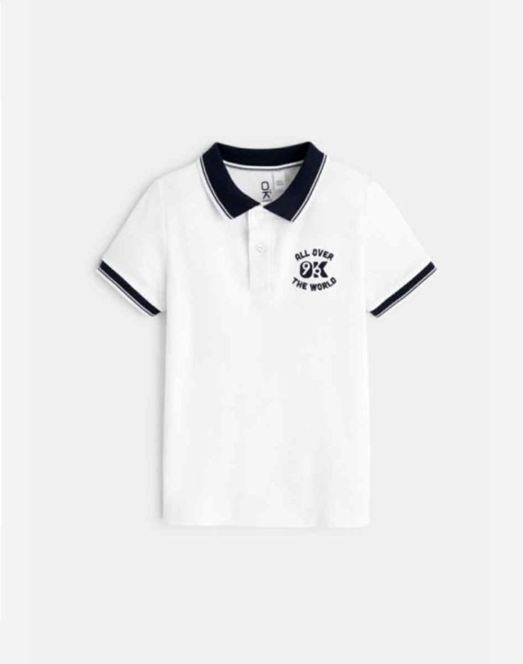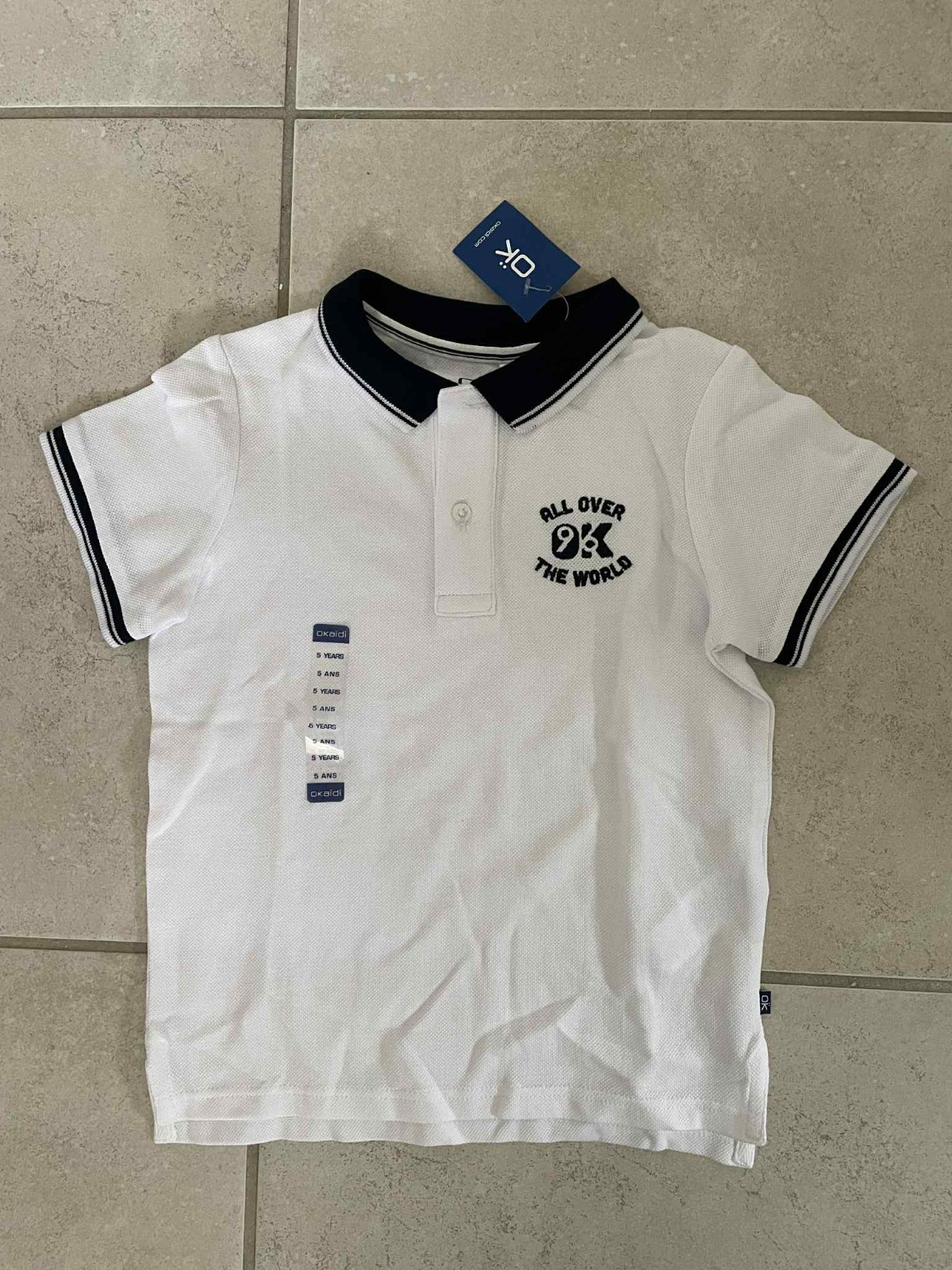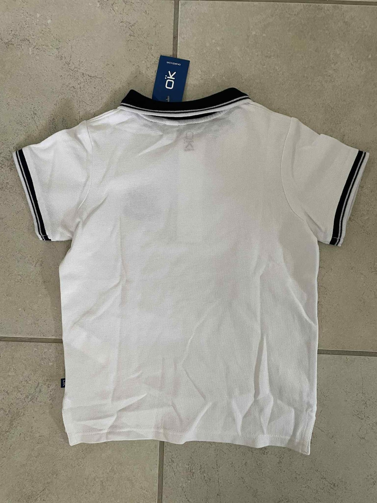 - new OKAIDI Toddler Boys POLO SHIRT sz 4/5 white navy blue classic dress tee