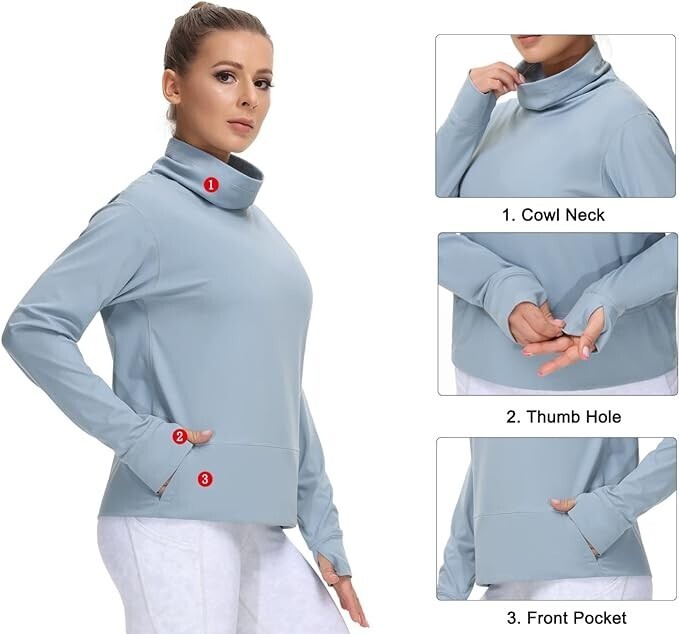 new THE GYM PEOPLE Women's Long Sleeve Cowl Neck Loose Fit Workout Hiking Pullover Sweatshirt With Pockets