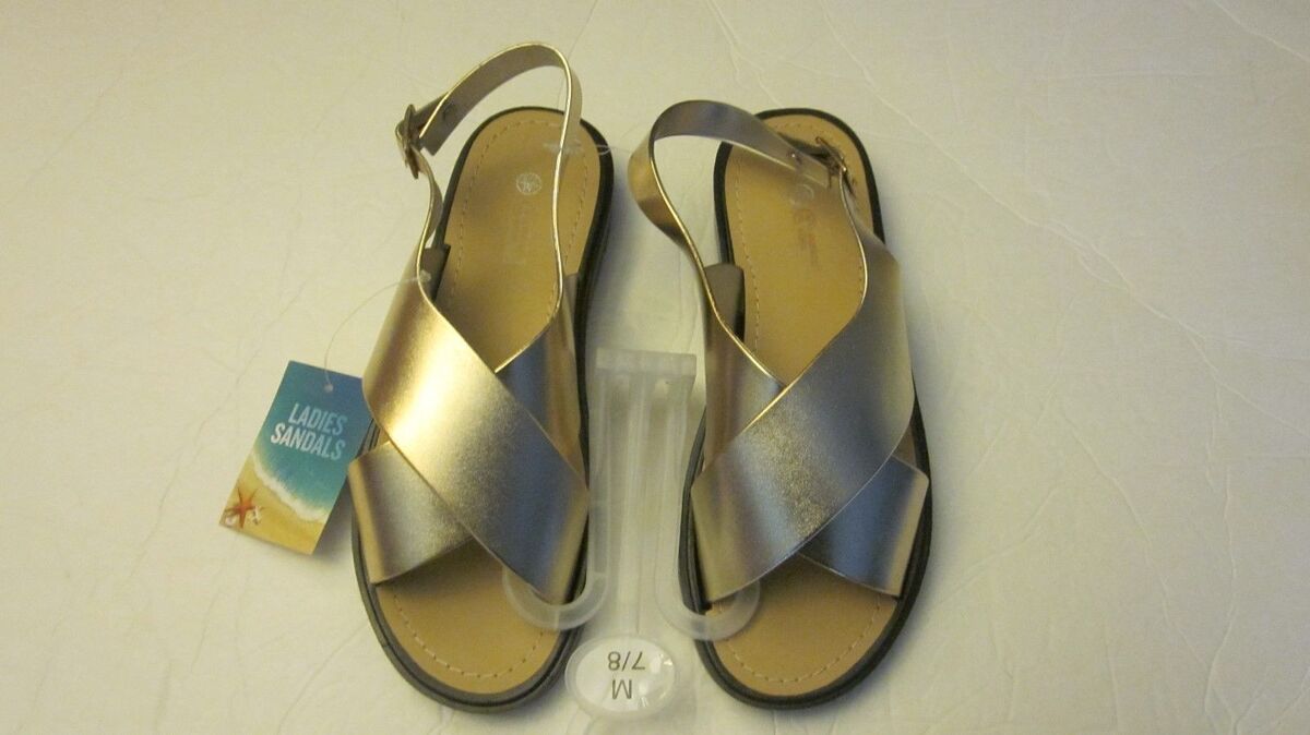 new Women's Gold Criss Cross Sandals sz 7/8 flip flops wedge shoes