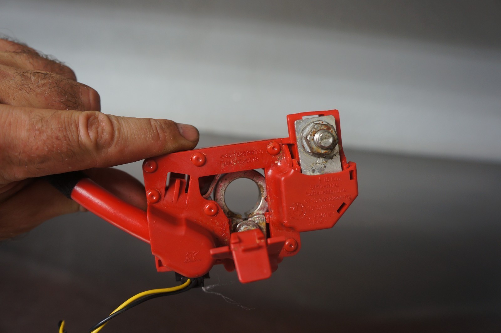 - oem 2007-2010 bmw e70 x5 rear trunk battery positive plus wire cable clamp