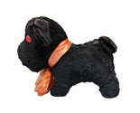 Old Vintage Stuffed Black Scottish Terrier Scotty Dog Red Eyes Plush Mohair 11x9 in good condition. It is not sawdust-filled. Original red silk bow. Its worn in spots but overall in good condition.No funky smells.