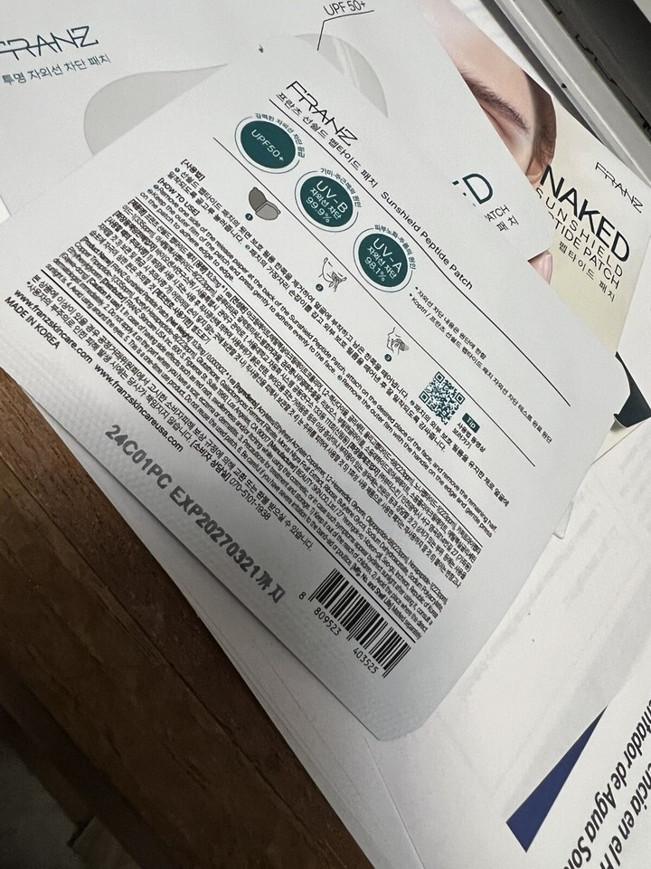 - one pair FRANZ Naked Sunshield Peptide Patch Pack K-Beauty