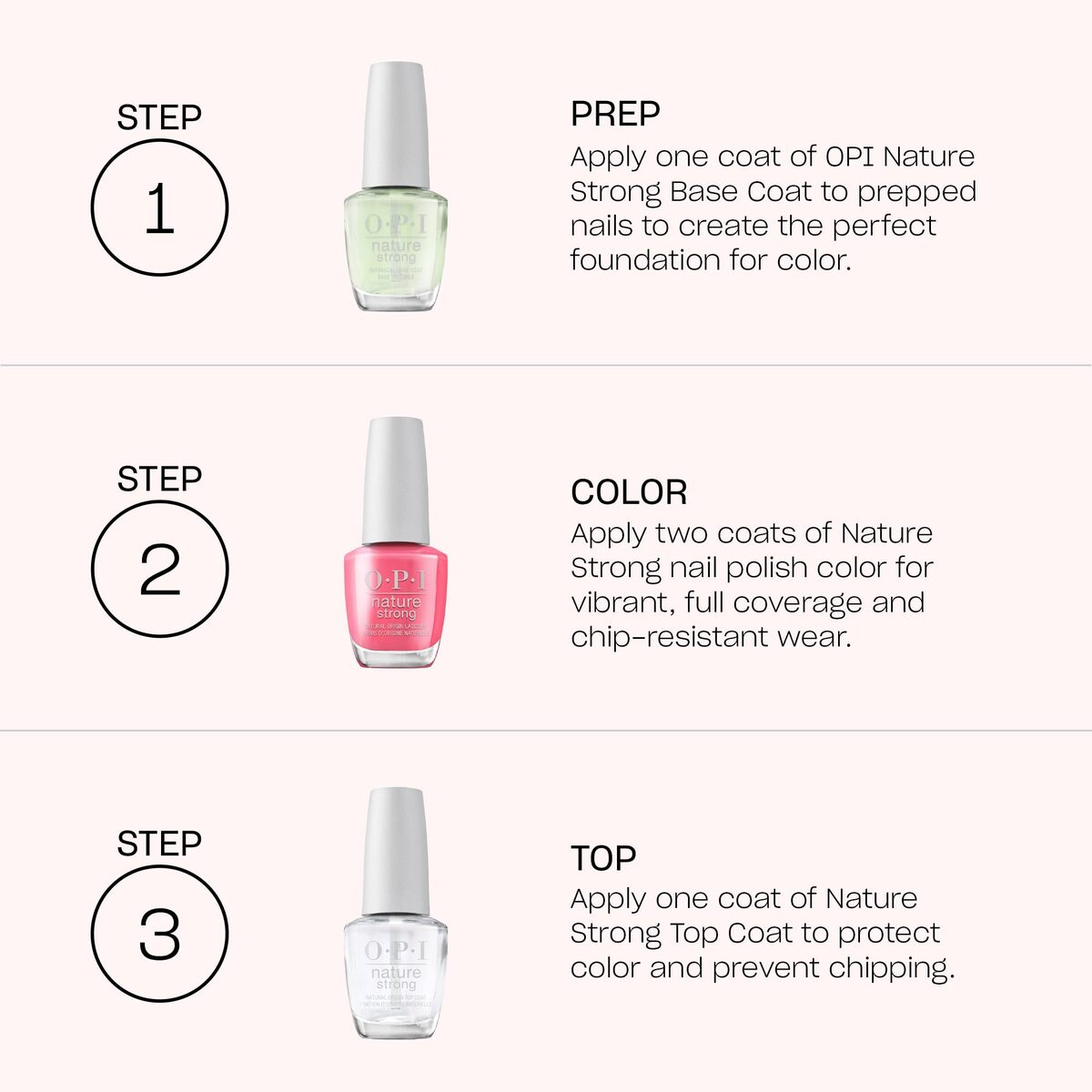 Natural Origin: OPI Nature Strong nail polish is made with plant based ingredients deriving from nature for an eco-friendly polish that does not compromise on high performance wear