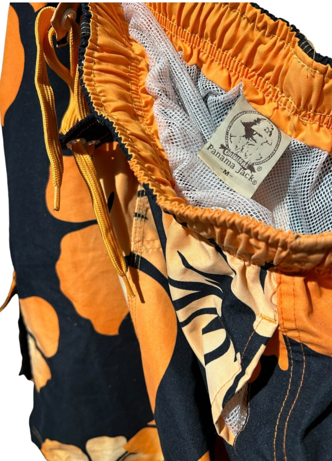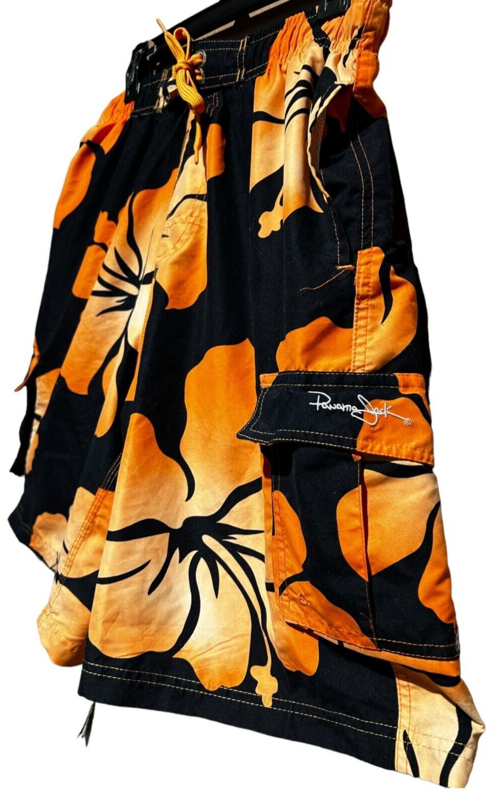 - original panama jack men's board shorts orange hibiscus print size M