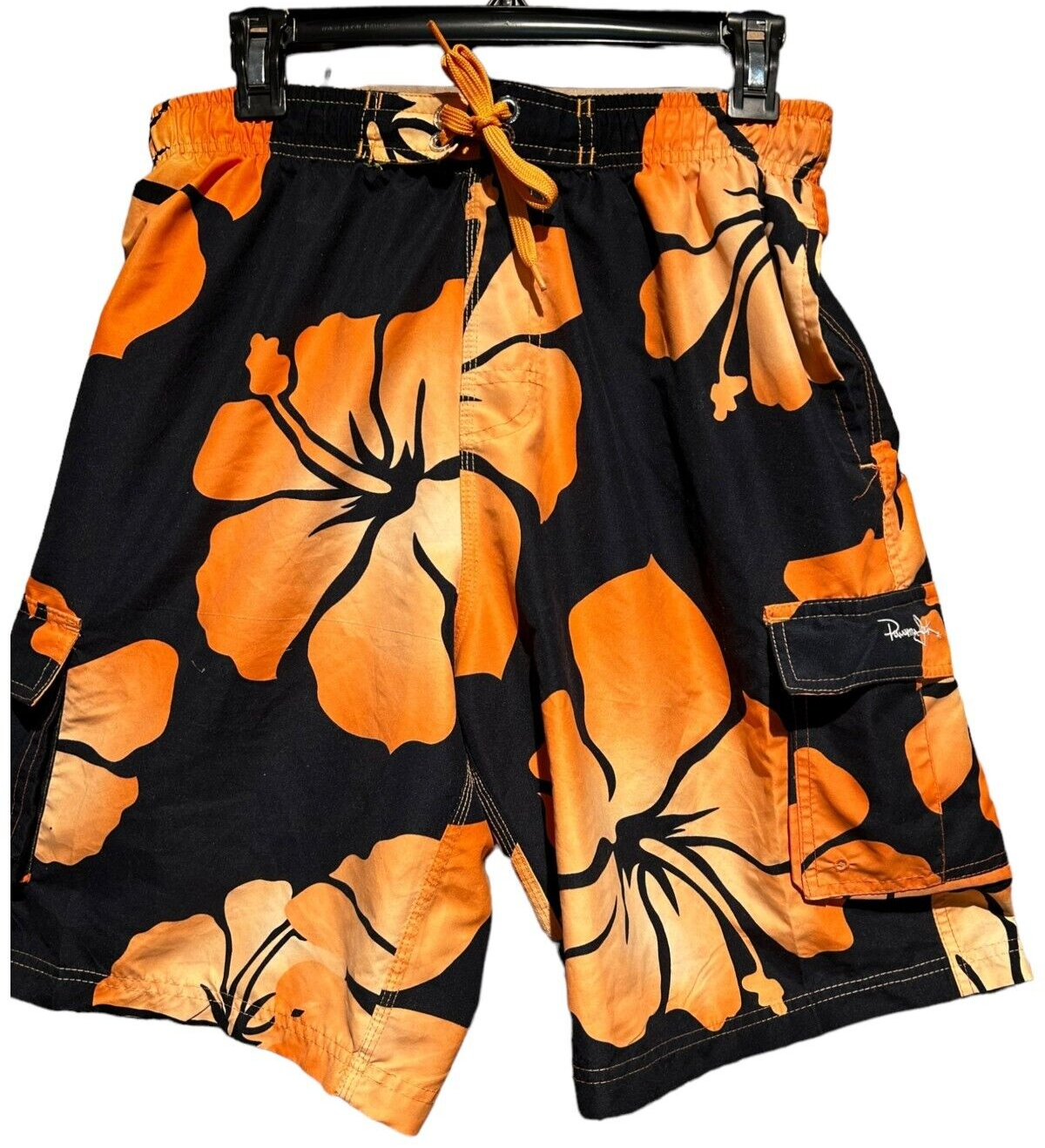 original panama jack men's board shorts orange hibiscus print size M