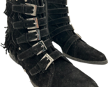 - penny loves kenny swish black fringe booties w/buckle straps & zipper women's 7M